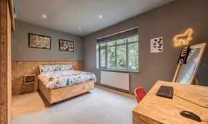 The spacious accommodation includes five generous double bedrooms and three stylish bathrooms, including a luxurious principal suite with vaulted ceilings, Velux window, and a sleek ensuite with electric underfloor heating.