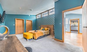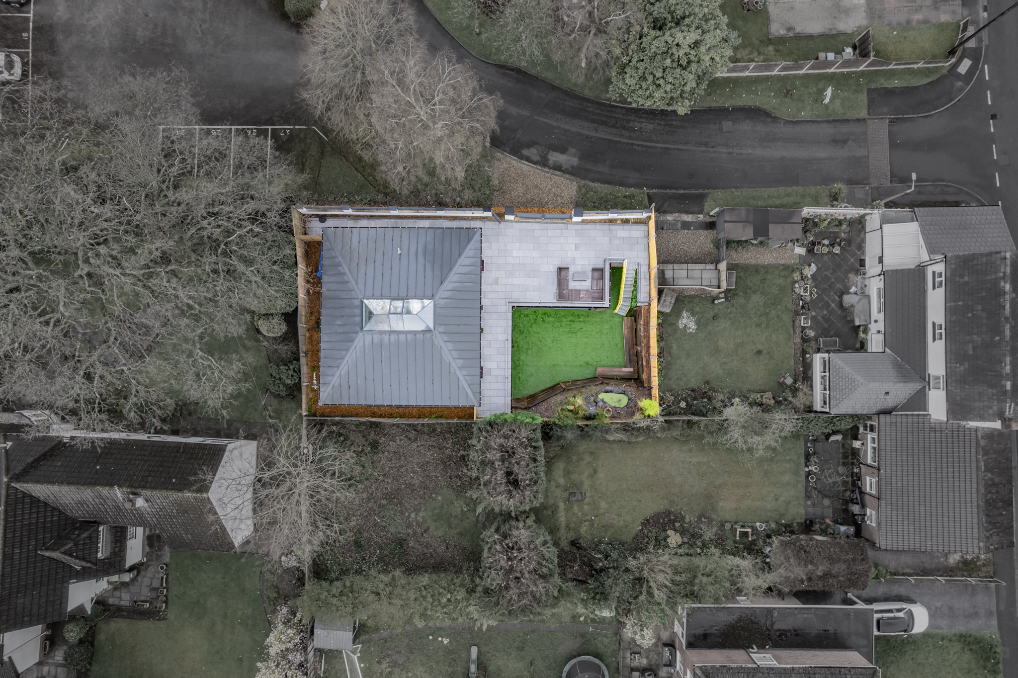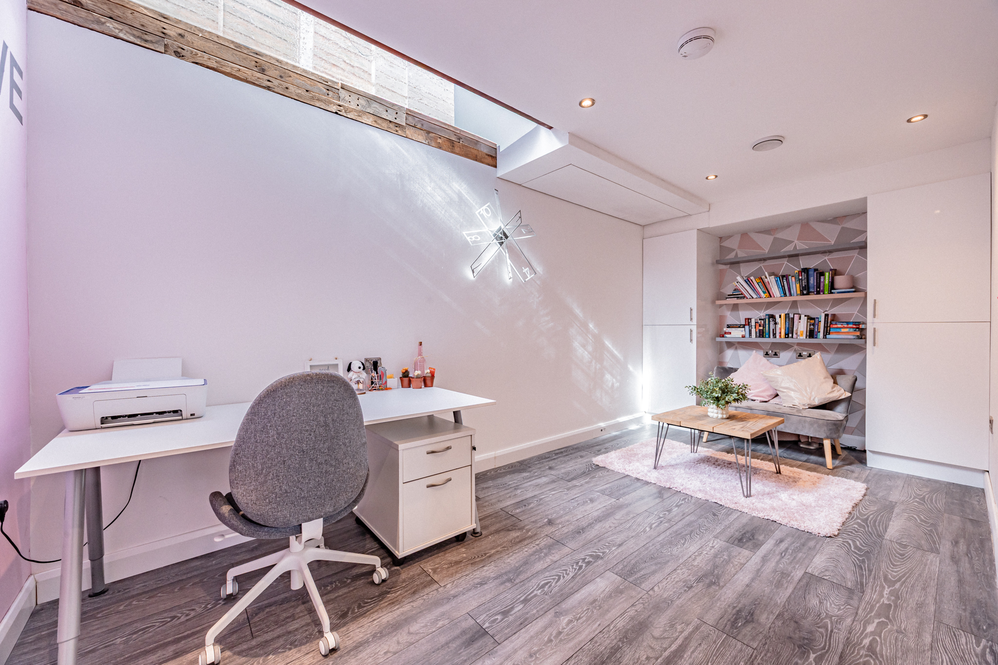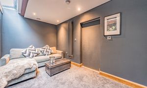 This home is designed to cater to every aspect of modern living. A cinema/TV room with recessed storage offers an immersive entertainment experience. A gym/bedroom four opens via bi-folding doors onto an artificial grass area, perfect for exercise or play. A study/reception room provides a quiet, well-organized workspace. Underfloor heating in the kitchen, office, and gym ensures year-round comfort, while fresh-air circulation and integrated speakers throughout enhance the modern lifestyle experience.