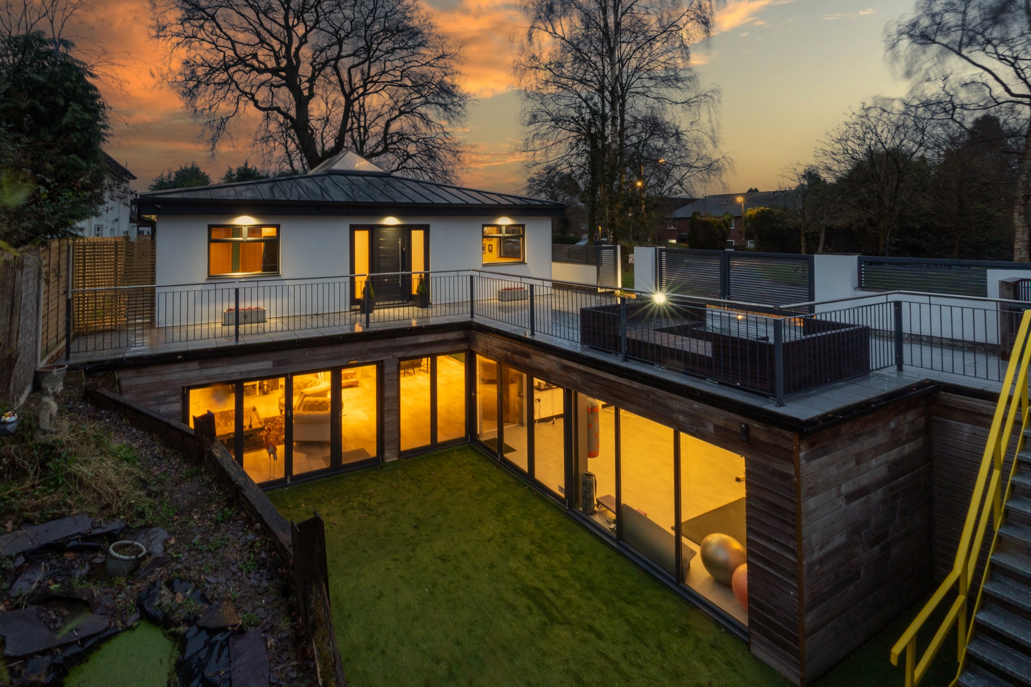 - Architecturally striking entrance with sky lantern and feature glass walkover