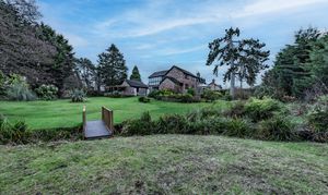 Outside, the property includes a detached garage with an electric door and a raised decked pergola to the rear, providing a pleasant outdoor seating area. Beyond this lies a truly exceptional feature of the home: an extensive, beautifully maintained rear garden that forms part of an impressive 0.6-acre estate. Thoughtfully landscaped and wonderfully private, it is one of the largest residential gardens in the Cheadle area. Mature trees, established hedging, and carefully curated planting create a sense of tranquillity and seclusion, while the sheer scale of the garden offers extraordinary potential for outdoor living, family enjoyment, or future development (subject to planning). It is a rare, standout space that sets this property apart.