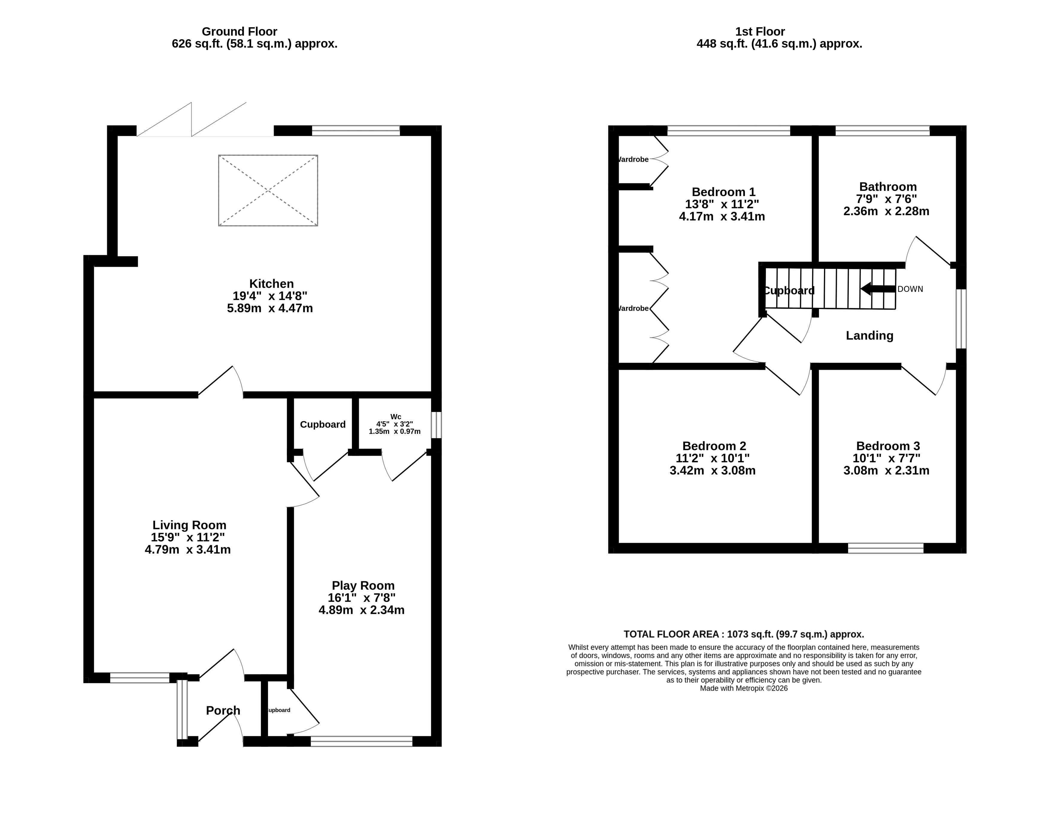 - Approx Sq Feet: 1,073 sqft