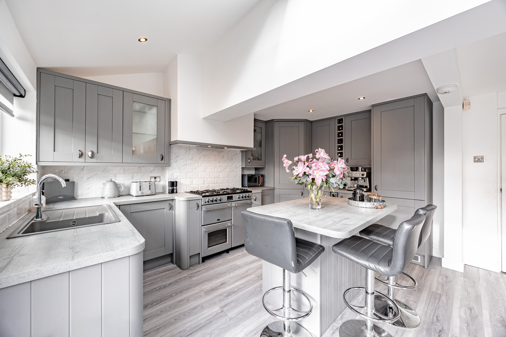 - Stylish kitchen with central island, range cooker and integrated appliances