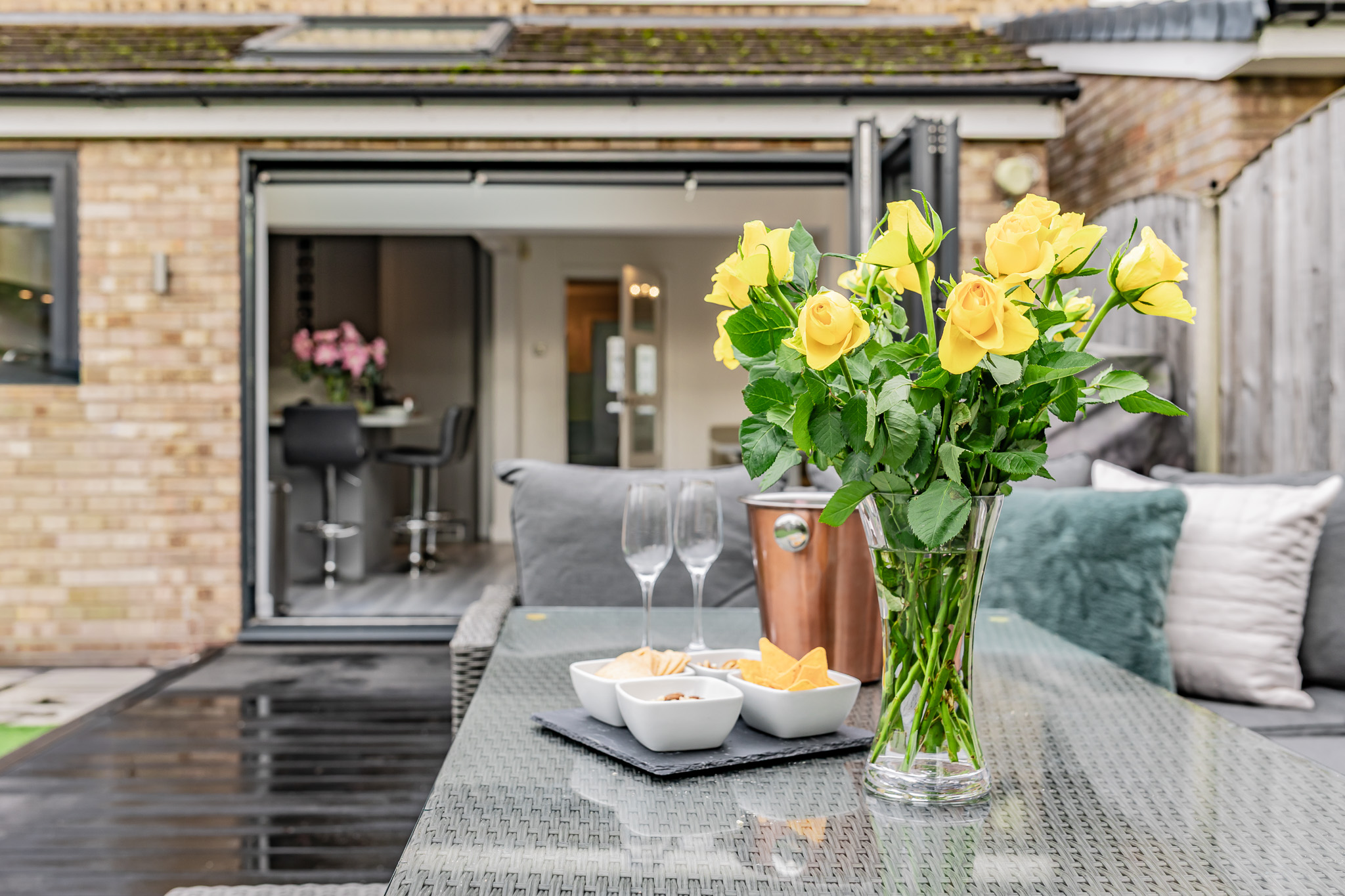 Bi-fold doors opening directly onto the rear garden, creating a seamless indoor–outdoor connection