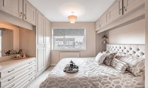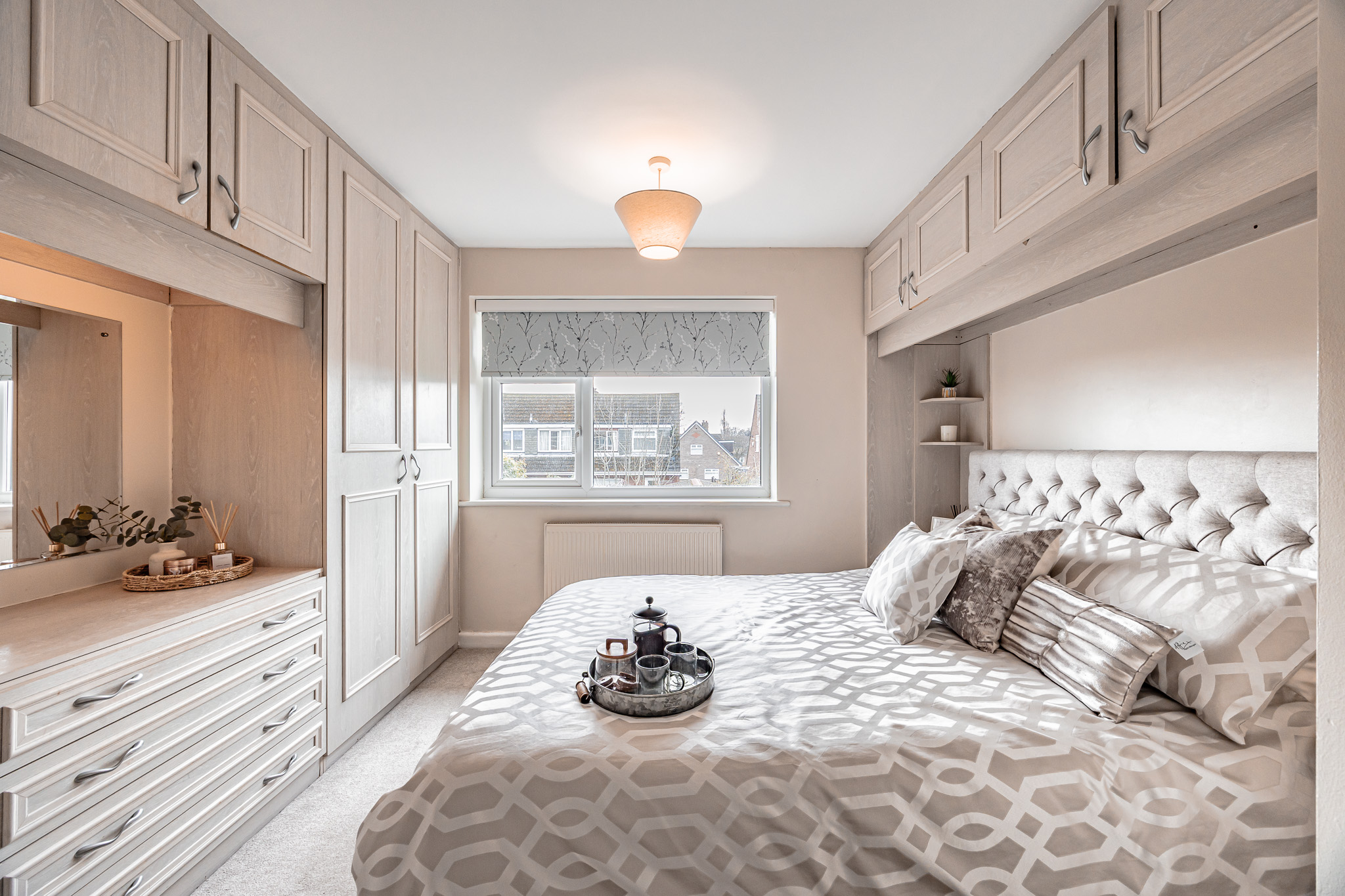 - Principal bedroom with fitted wardrobes, vanity unit and garden outlook