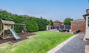 The garden is an outstanding feature of this home. Wrapping around the property, it offers privacy, versatility and year-round enjoyment. Carefully landscaped, it combines sweeping lawn, conifer hedging, and paved and gravelled seating areas designed to capture the morning and afternoon sun. For families, a bark-filled play area provides an ideal space for children, while keen gardeners will appreciate the shed, outside taps and the thoughtful layout that balances function with beauty. This east-facing garden is a haven for relaxation and entertaining, benefitting from sunlight throughout the day.
