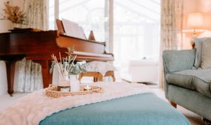 - Dual-aspect living room with marble-surround fireplace and conservatory