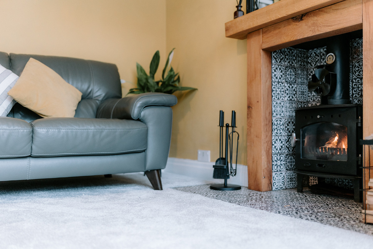 - Cosy bay-fronted living room featuring a charming log burner for warmth and ambience