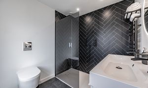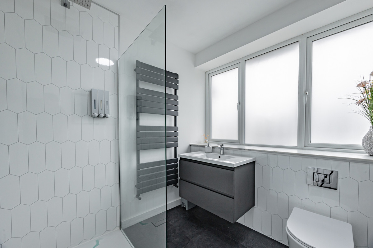 - Stylish family bathroom with a walk-in shower and a contemporary downstairs bathroom