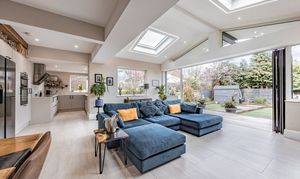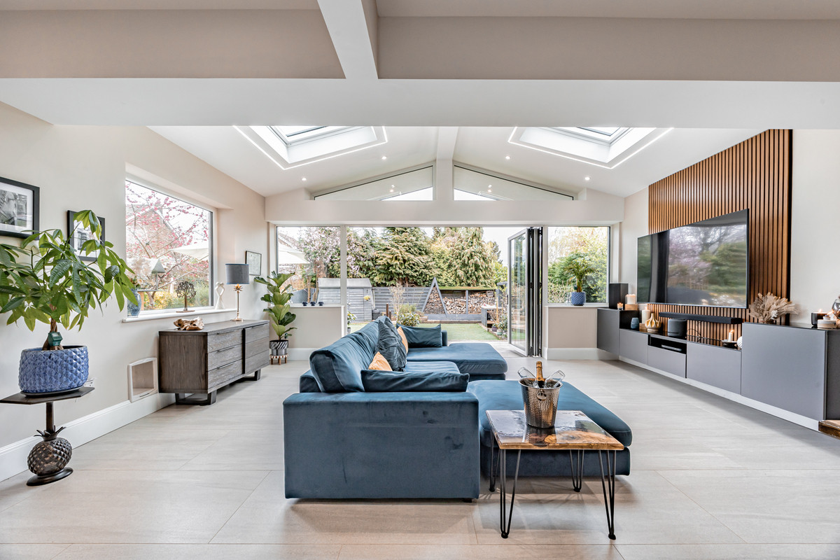 - Impressive open-plan kitchen and living area with skylights, Velux window, bi-fold doors, quartz worktops, and high-end integrated appliances