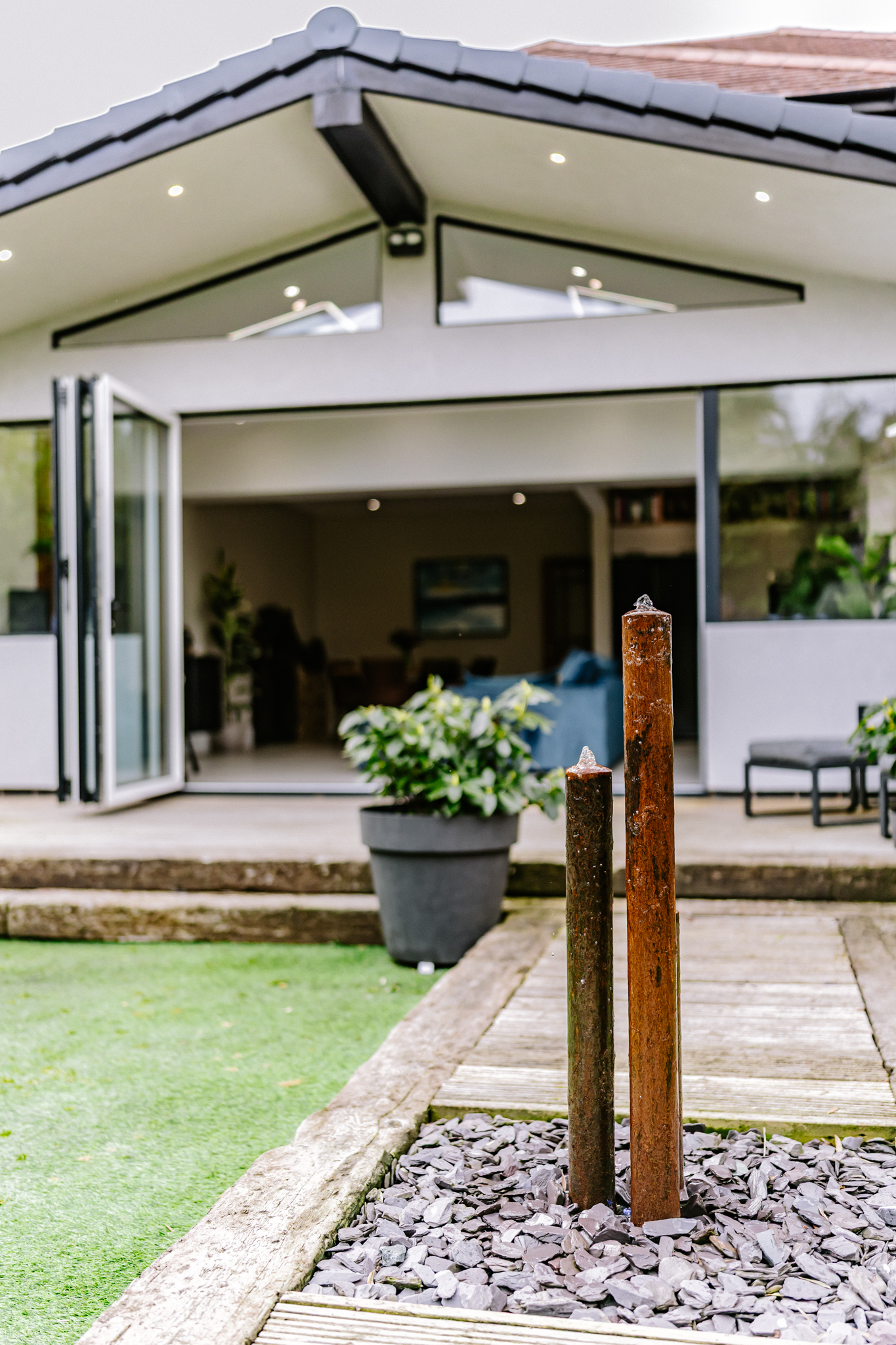 We love siting on the veranda, under the canopy, listening to the water feature and the summer rain, enjoying the tranquillity of the garden.