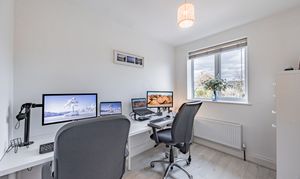 The kitchen itself is a culinary delight, featuring sleek quartz worktops and a range of high-end integrated appliances, including a Hi-Sense induction hob with a Caple extractor fan, a Klarstein wine fridge, a Hi-Sense dishwasher and fridge/freezer, and a double oven with a grill. Whether preparing family meals or hosting lively gatherings, this space adapts effortlessly to any occasion, making it the true hub of the home.