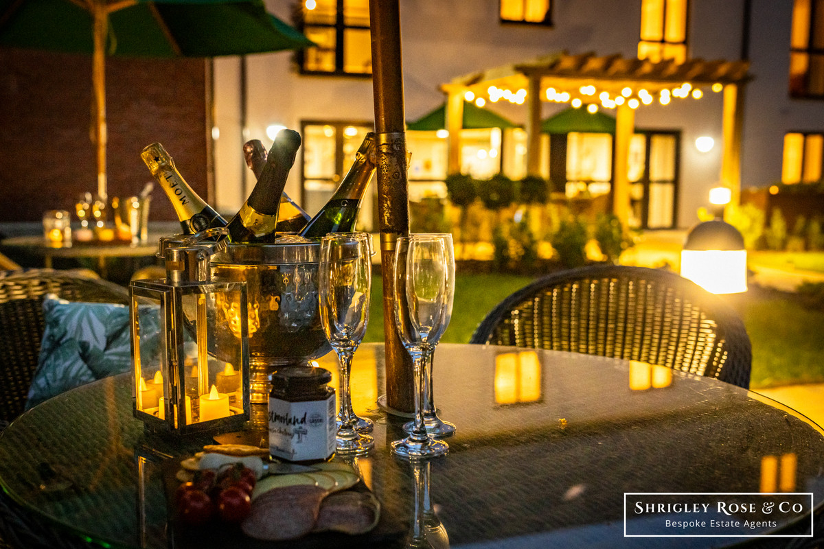 Indulge in afternoon delights with tea and cake or savour an early evening G&T on the fully furnished, sun-drenched terrace. Admire the stunning landscaped wrap-around gardens, where the upkeep is taken care of, leaving you to relish the beauty without the hassle.