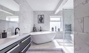 The family bathroom is equally impressive – a luxurious four-piece suite that has been finished to an exceptional standard. Stylishly designed with contemporary fittings and elegant tiling, it provides both comfort and sophistication. The space includes a separate shower and a beautifully fitted bath, perfect for relaxing at the end of the day, while underfloor heating adds a touch of indulgence and warmth underfoot.