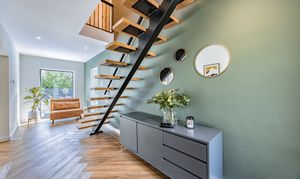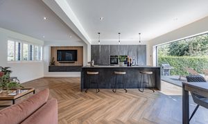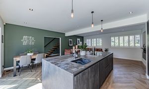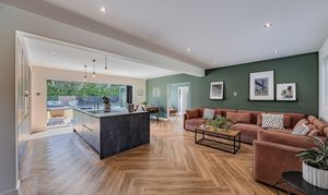 Upon entering, you are welcomed by a spacious and inviting hallway that opens into a breathtaking open-plan kitchen, lounge and dining area that spans the full length of the property. This remarkable space has been thoughtfully designed for modern living, featuring underfloor heating, sleek Dekton worktops, a Quooker boiling tap, soft-close cabinetry, and premium integrated Neff appliances. Bi-folding doors extend the living space into the landscaped, south-facing rear garden, offering a flawless indoor-outdoor experience.