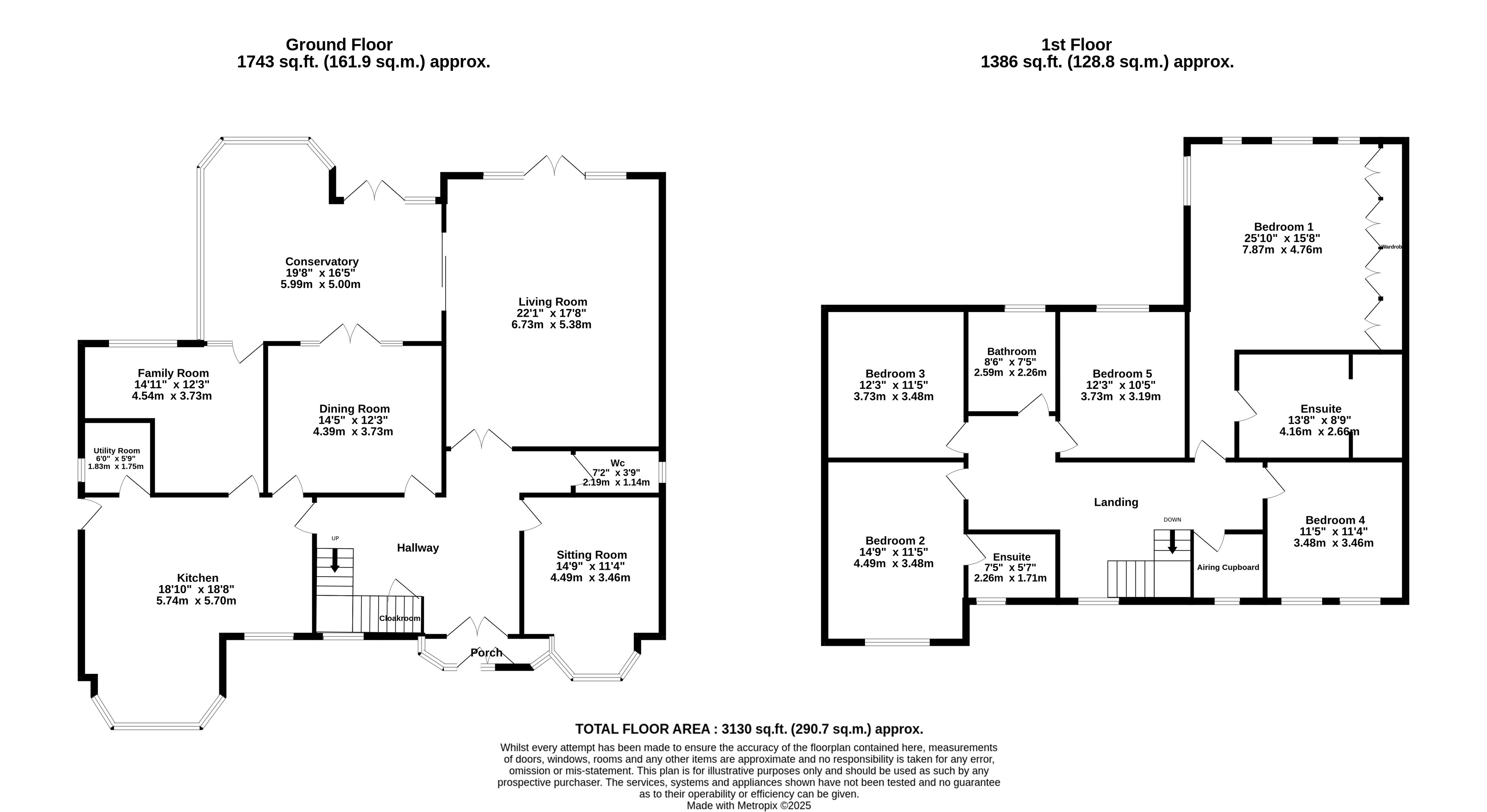 - Five Double Bedrooms – Including a luxurious principal suite with en suite Jacuzzi bathroom and fitted wardrobes.