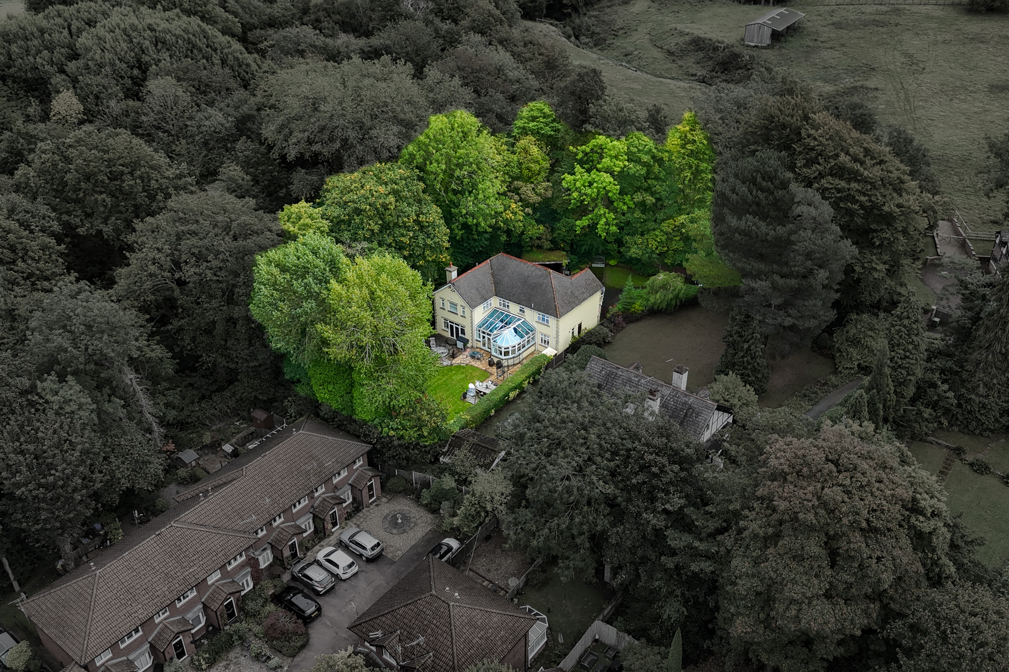 Built in 1994, this impressive detached home offers a rare balance of space, character, and convenience. With six reception rooms and five bedrooms, it sits in a semi-rural location that feels peaceful and private, yet it is just off the bypass with excellent links to nearby roads and motorways. Hazel Grove Village, Poynton, Bramhall, and Stockport are all within easy reach, while a stream and Hazel Grove Golf Club at the end of the lane add to the rural charm. With only a handful of homes along the lane, the setting feels exclusive and tucked away.