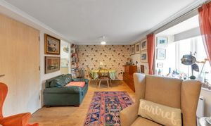 The lounge/dining room is wonderfully open-plan, enjoying a large bay window, wood flooring, pendant lighting, pleasant decor, and ample space for a variety of lounge, dining and storage furniture.