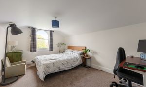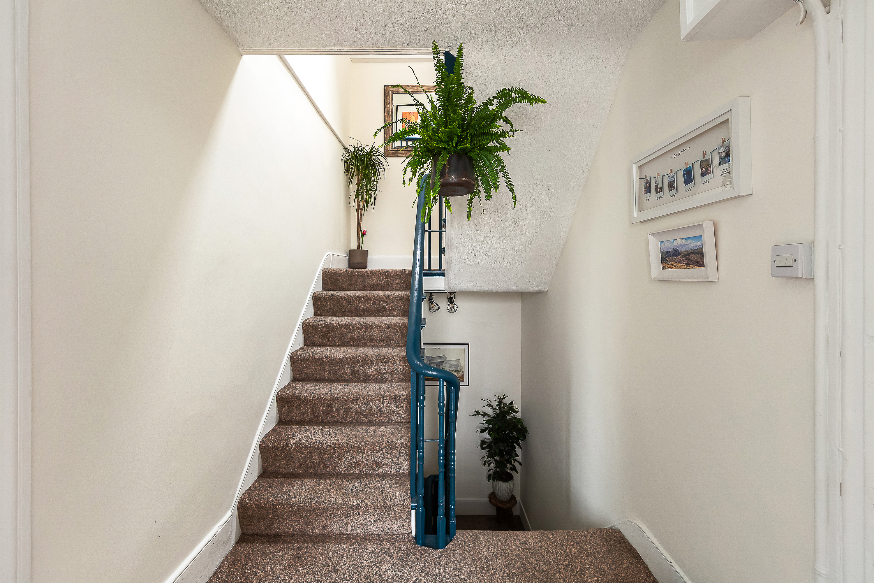 The flat extends to 1,298 sq ft (inc’ eaves), which is more space than many local houses! You enter at the first floor level and climb to the second floor, where the living room, kitchen, and bedroom one sit; the third floor holds bedrooms two and three, along with another bathroom. The layout means the flat lives more like a house or maisonette than a standard flat