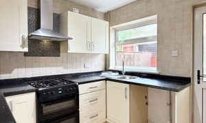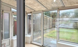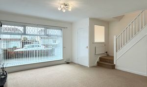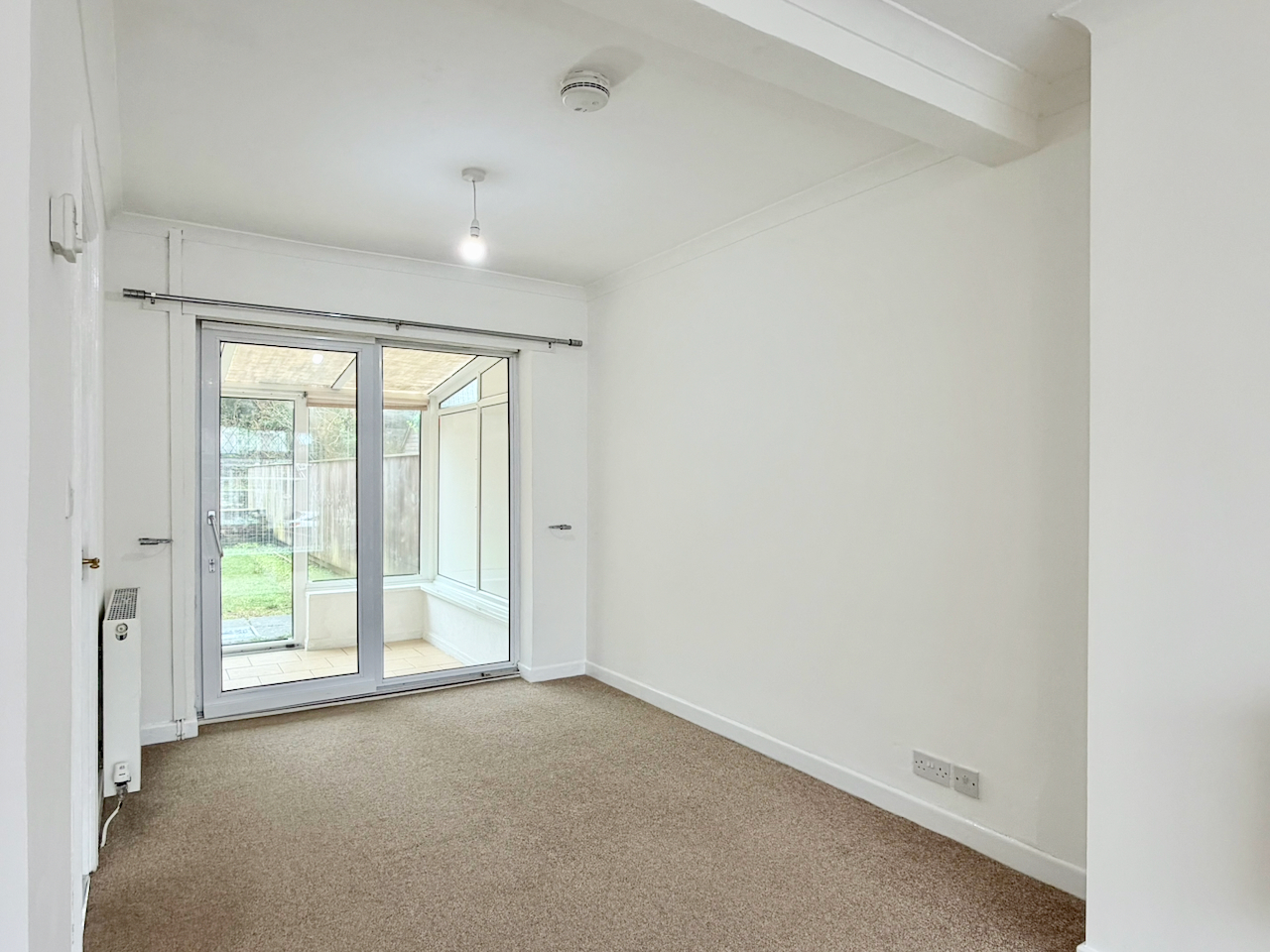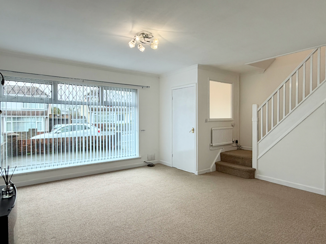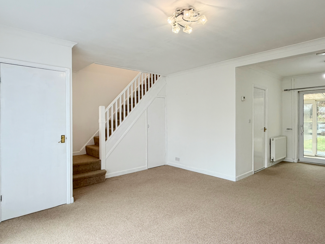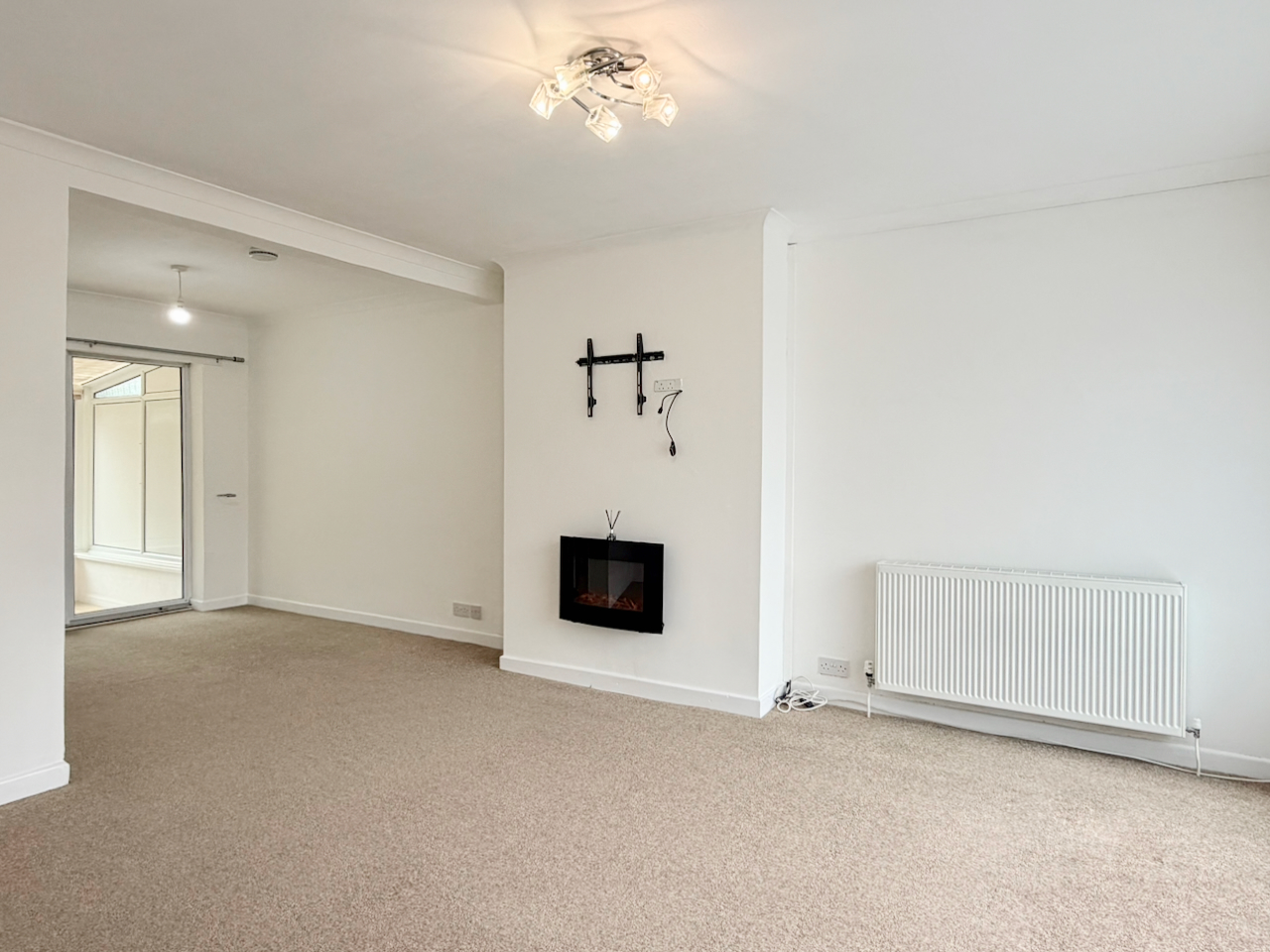 Internally, this unfurnished property comprises entrance hall leading to large lounge diner with electric fire and understairs cupboard, onto conservatory, and modern fitted kitchen.