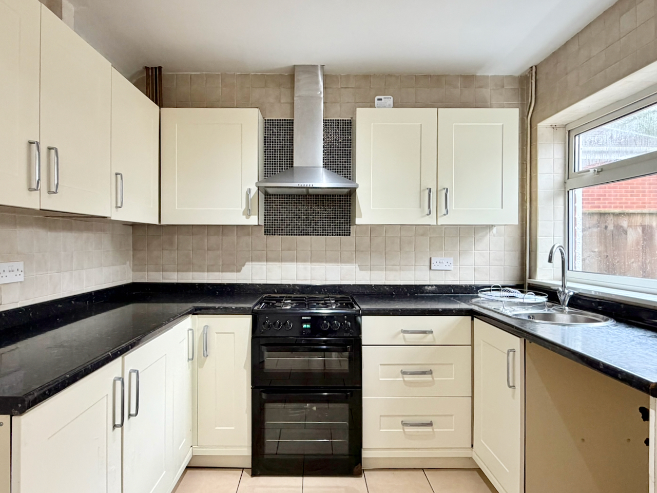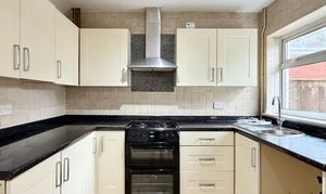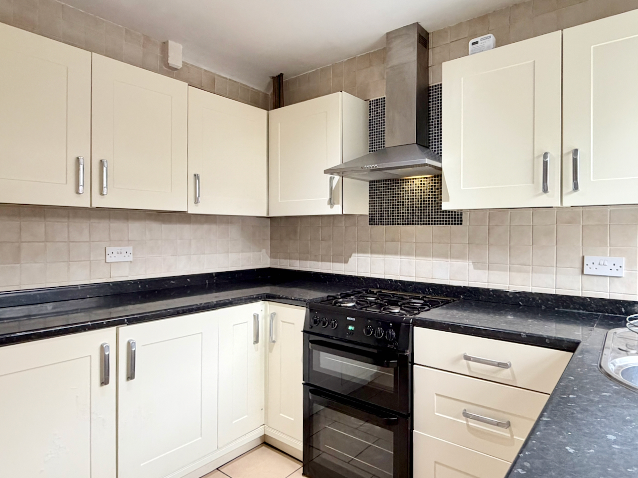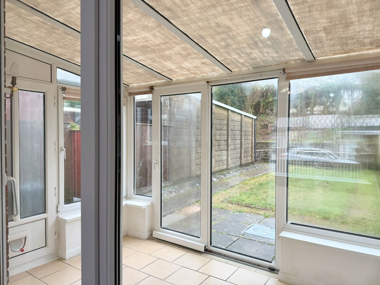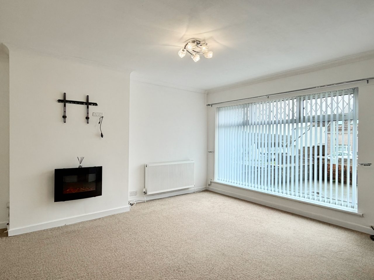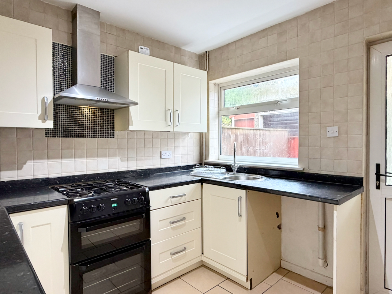 Internally, this unfurnished property comprises entrance hall leading to large lounge diner with electric fire and understairs cupboard, onto conservatory, and modern fitted kitchen.
