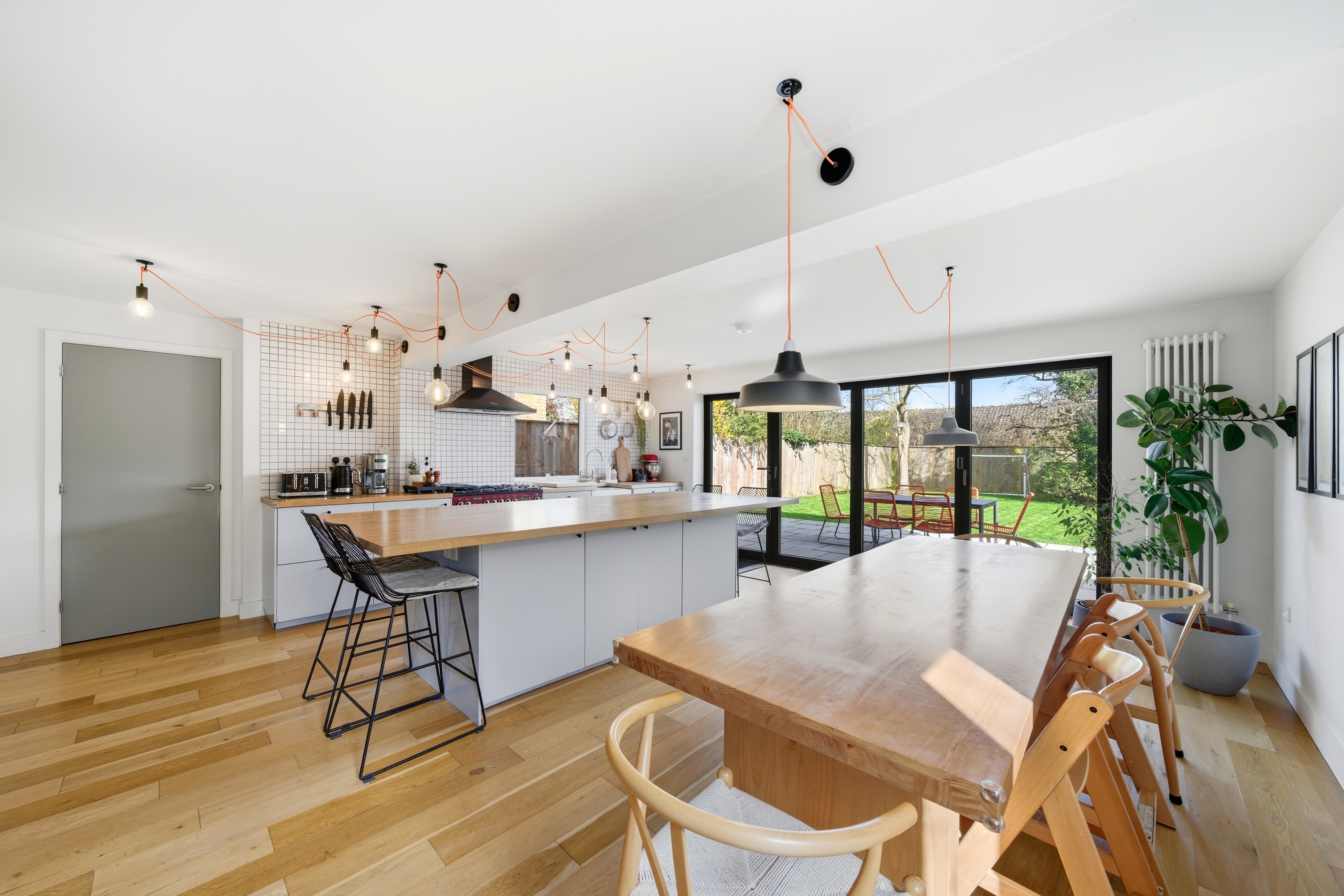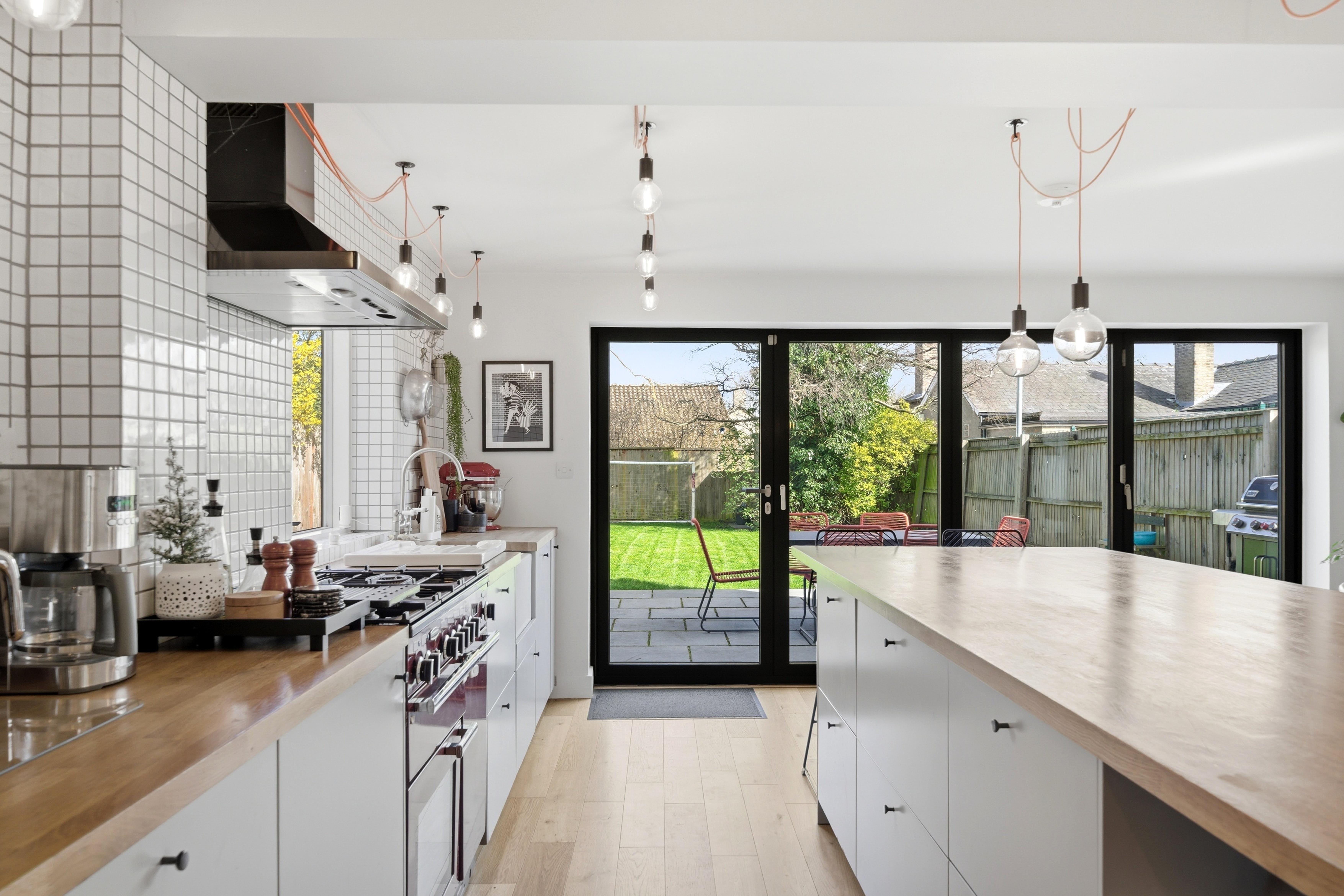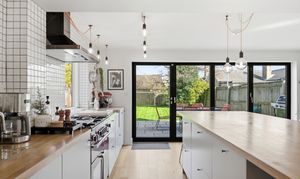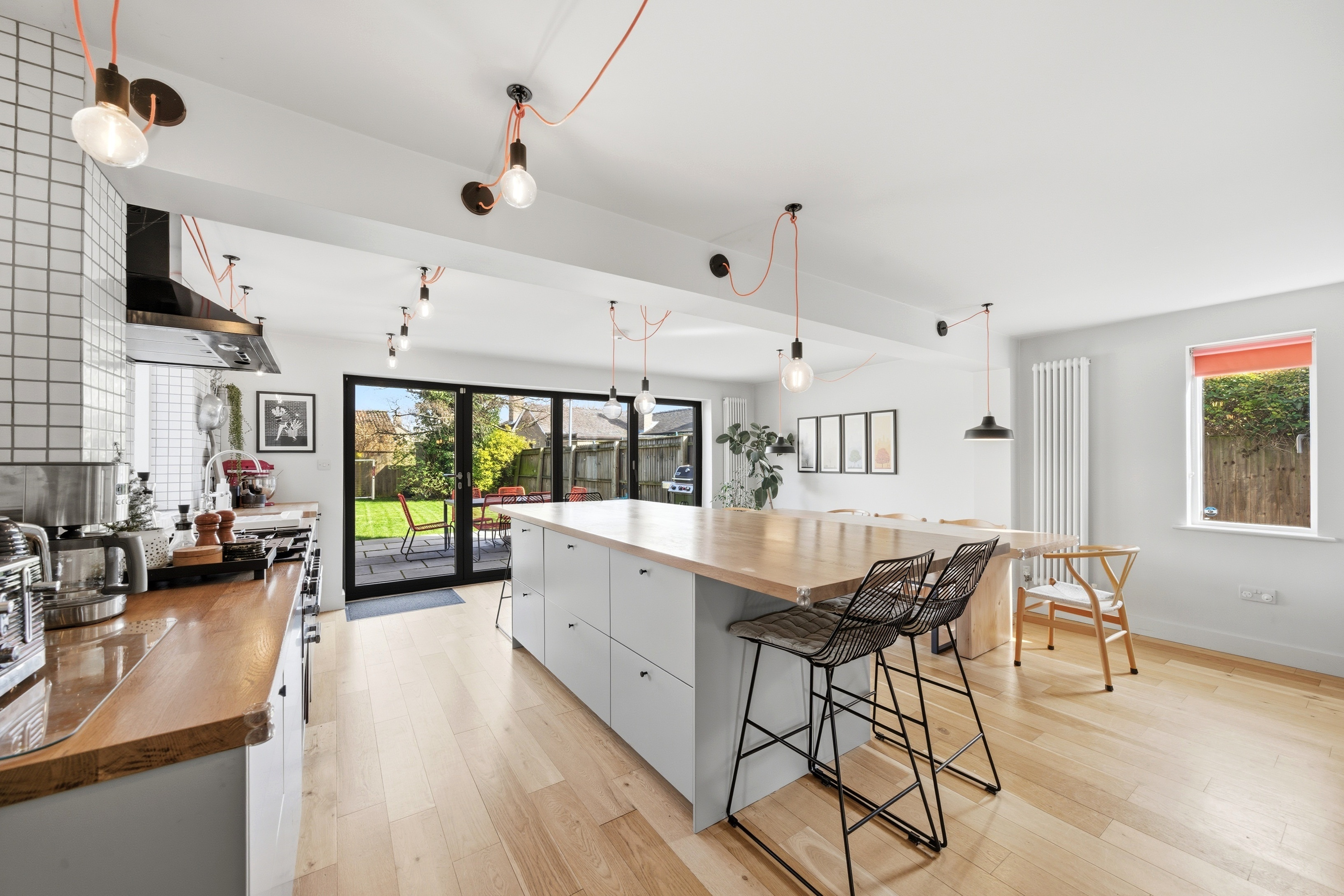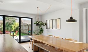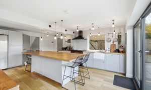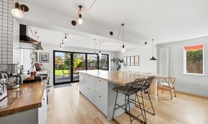 - Contemporary open-plan kitchen and living space opening to the garden