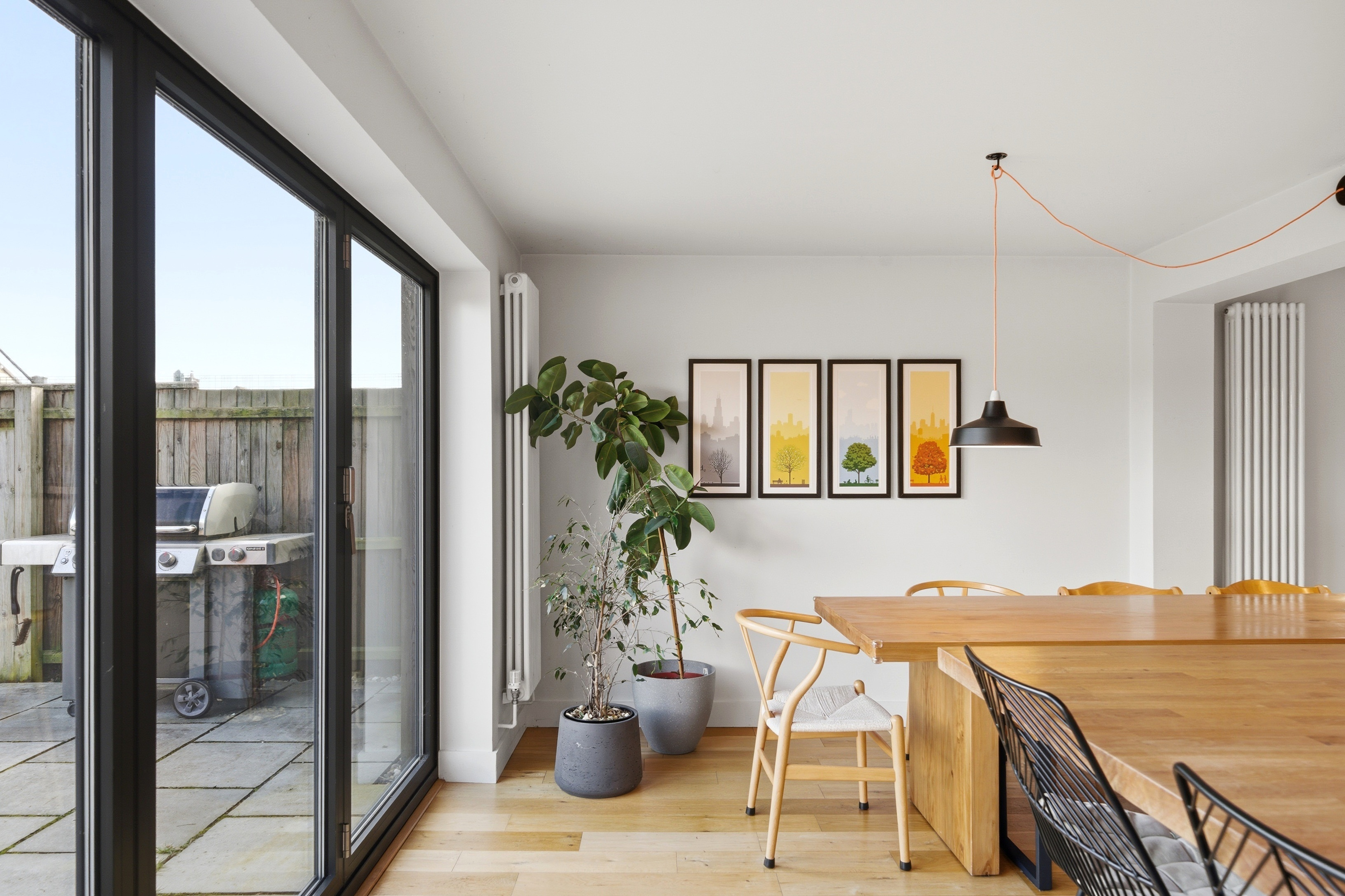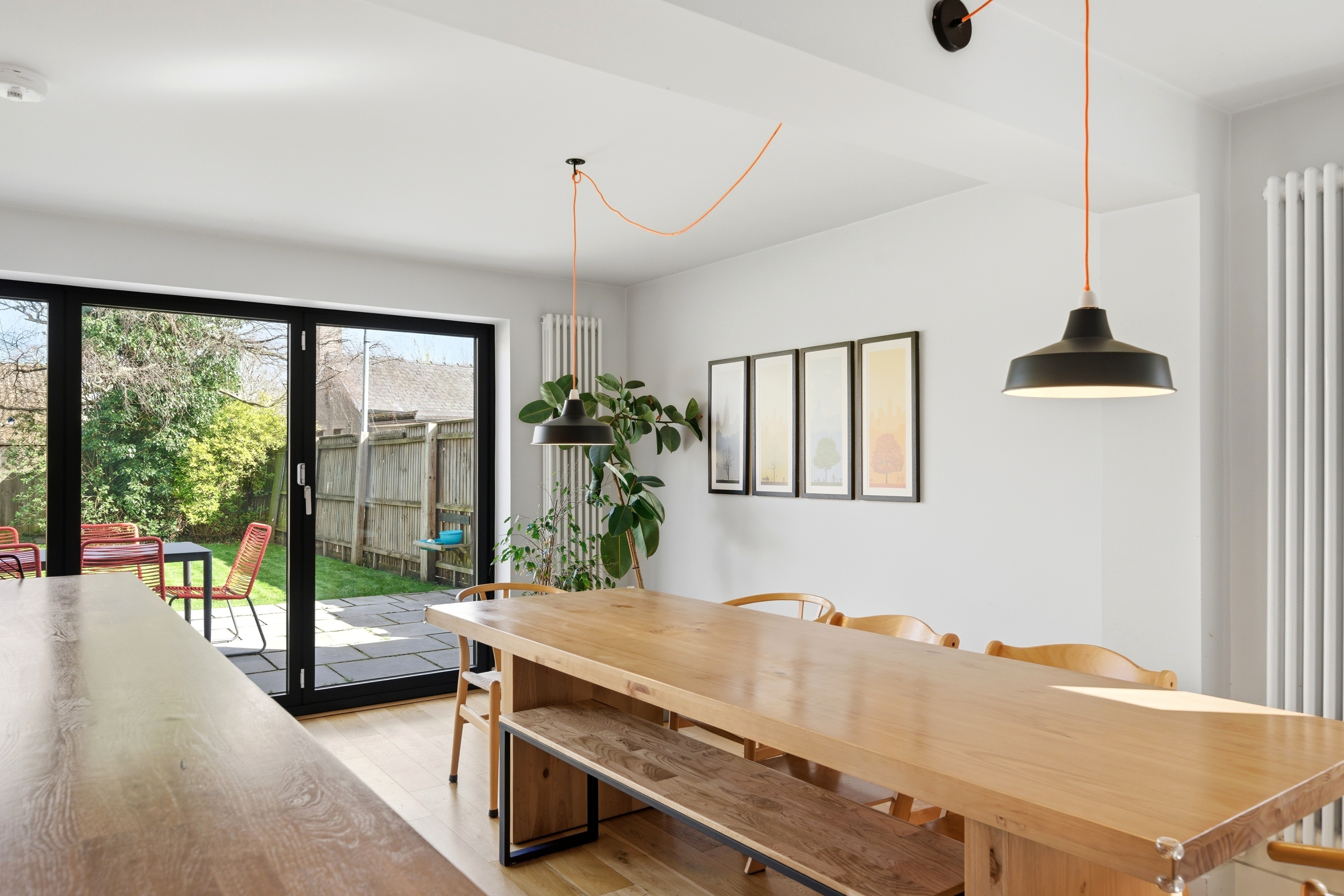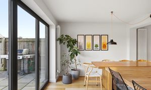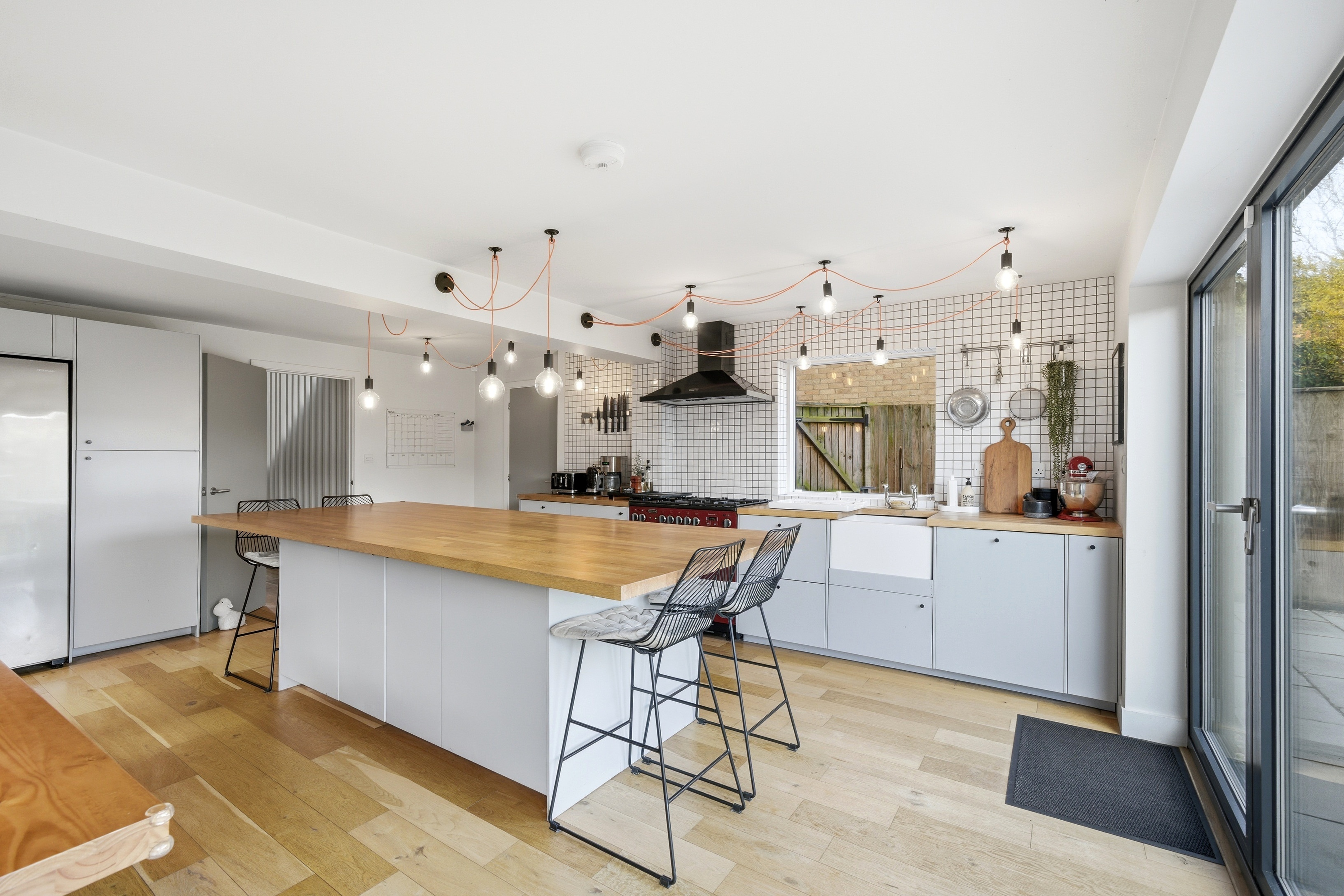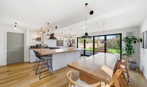 - Contemporary open-plan kitchen and living space opening to the garden