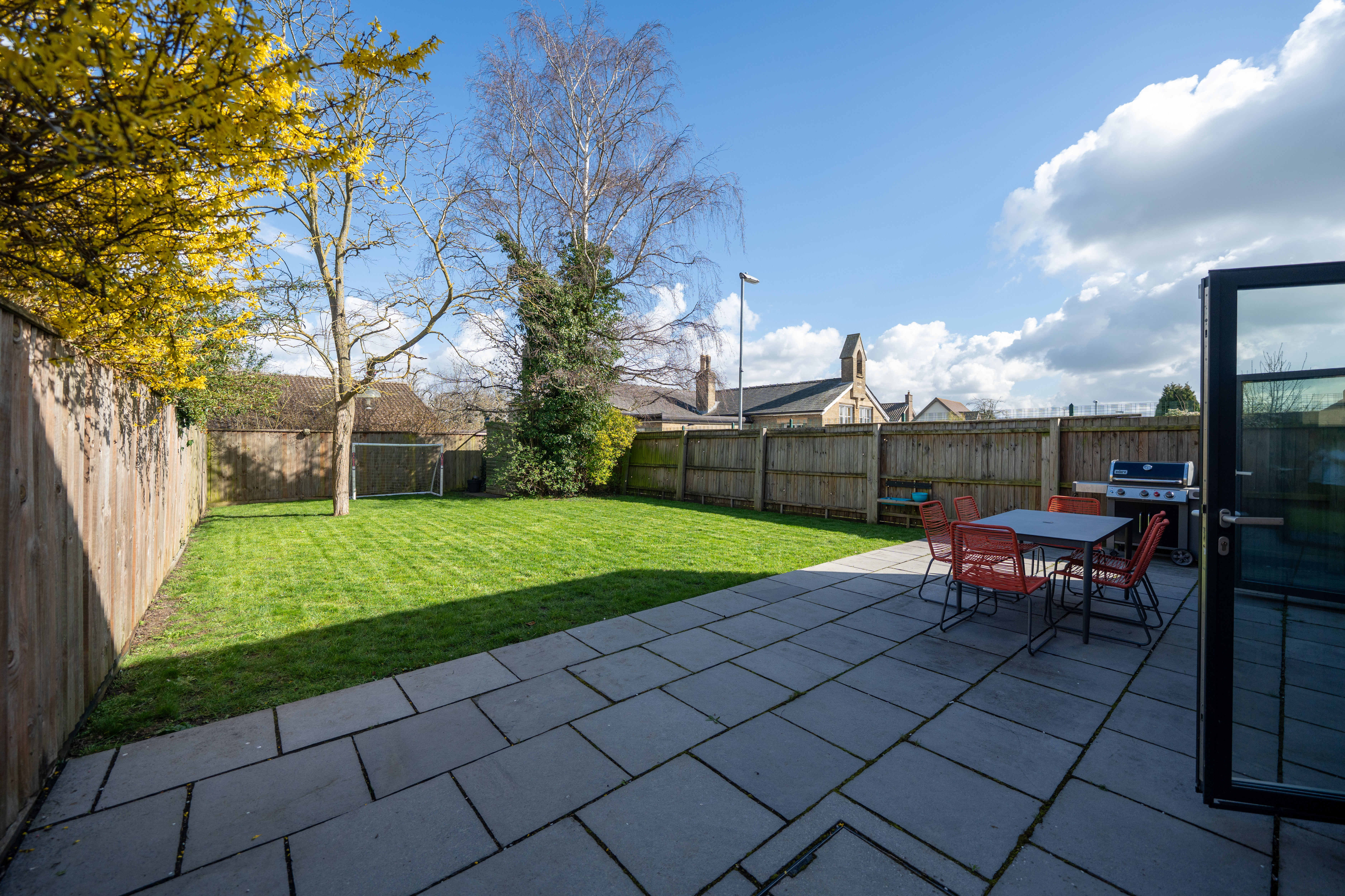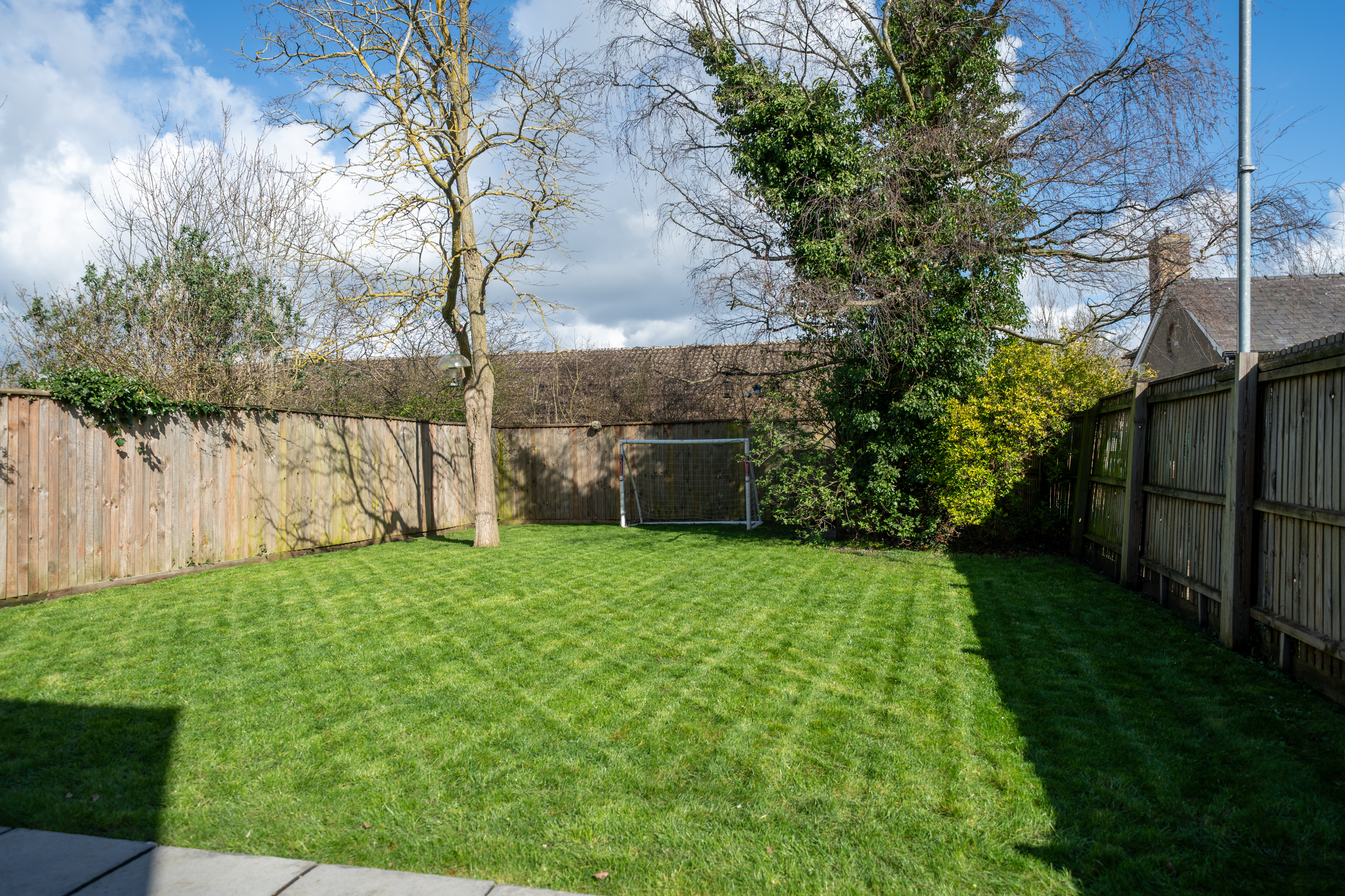 Externally, the property enjoys a generous plot for its type, including a mature, private rear garden extending to approximately 20 metres (65 feet). The space provides plenty of room for children to play, summer entertaining, or simply relaxing in the sun. To the front, there is ample driveway parking. The design of the house, combined with its quiet cul-de-sac position, creates a calm and refined family environment.