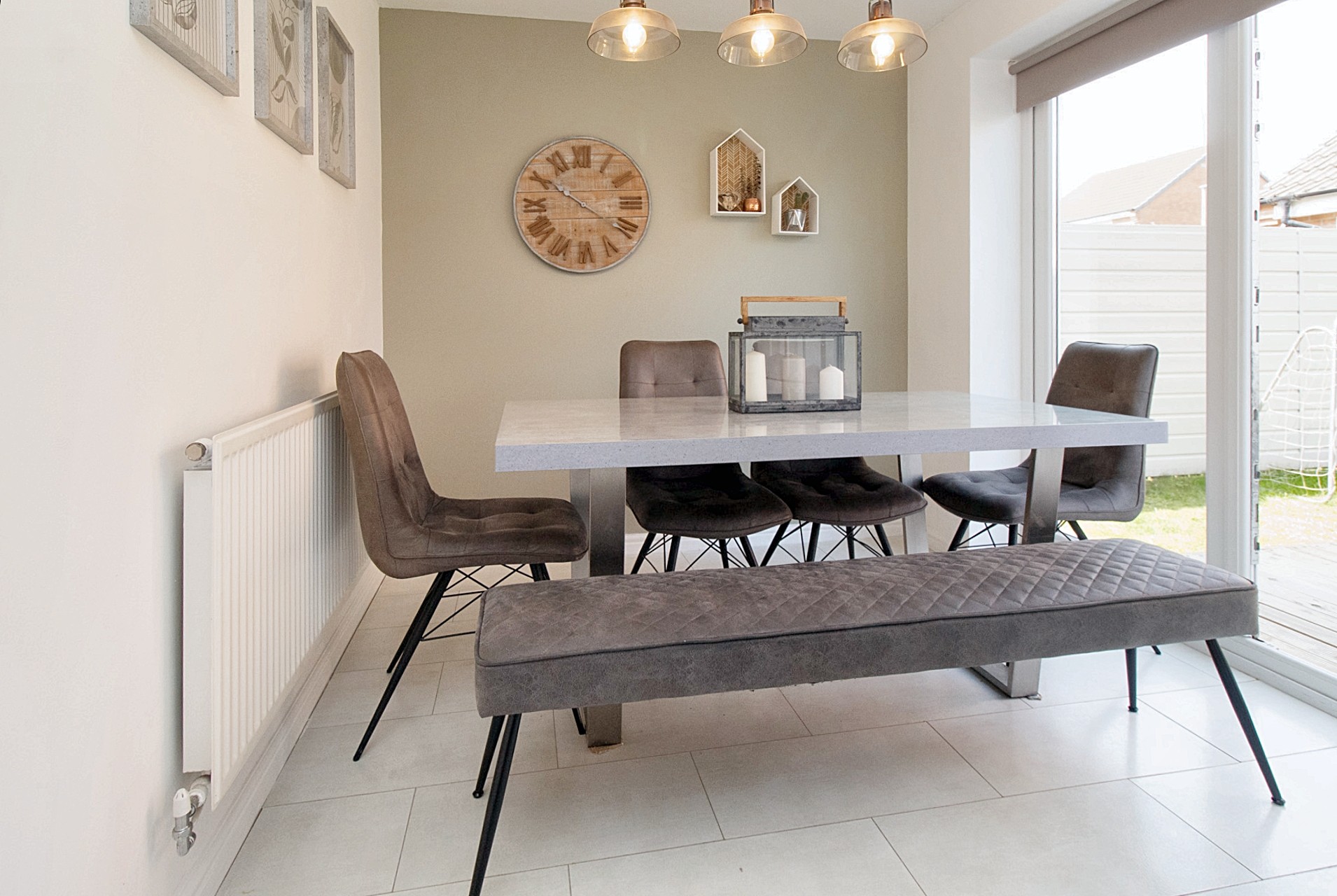With karndean vinyl flooring, radiator and door leading to the lounge.