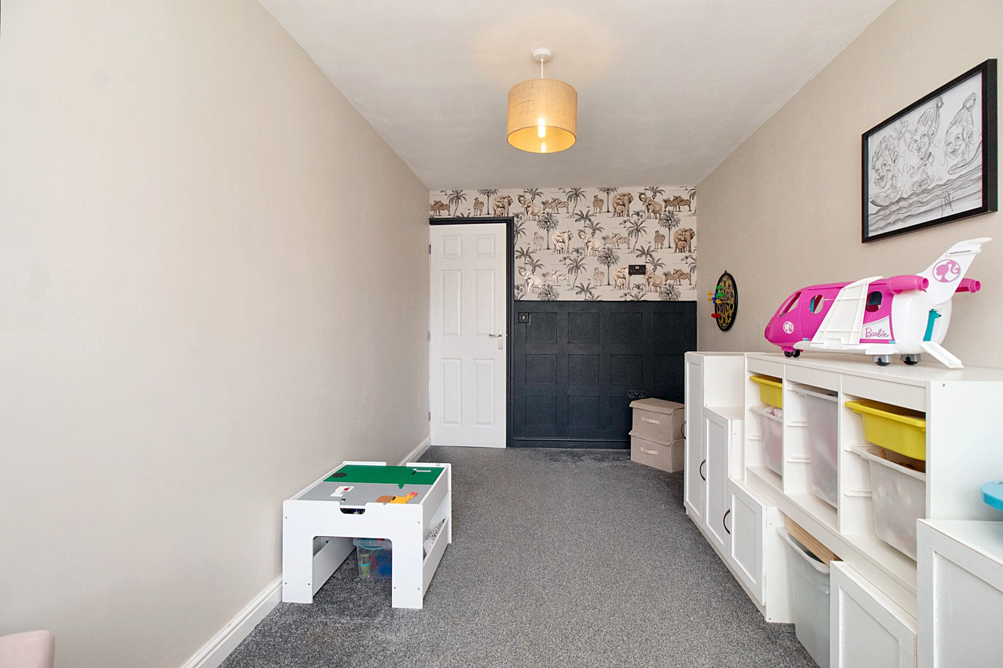 With carpet flooring, radiator, stairs leading to the first floor, doors leading to the play room, lounge, downstairs WC and kitchen/diner