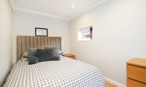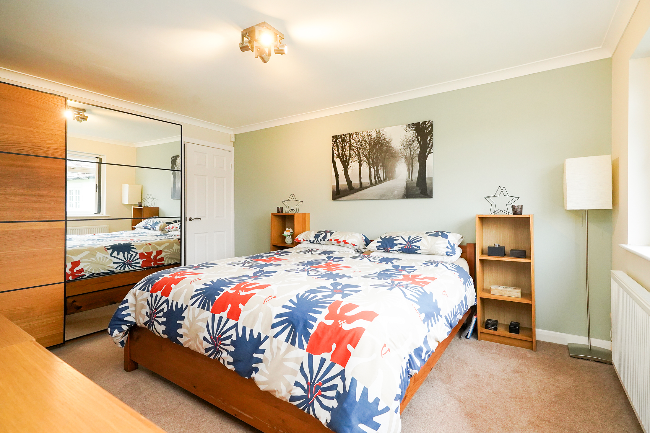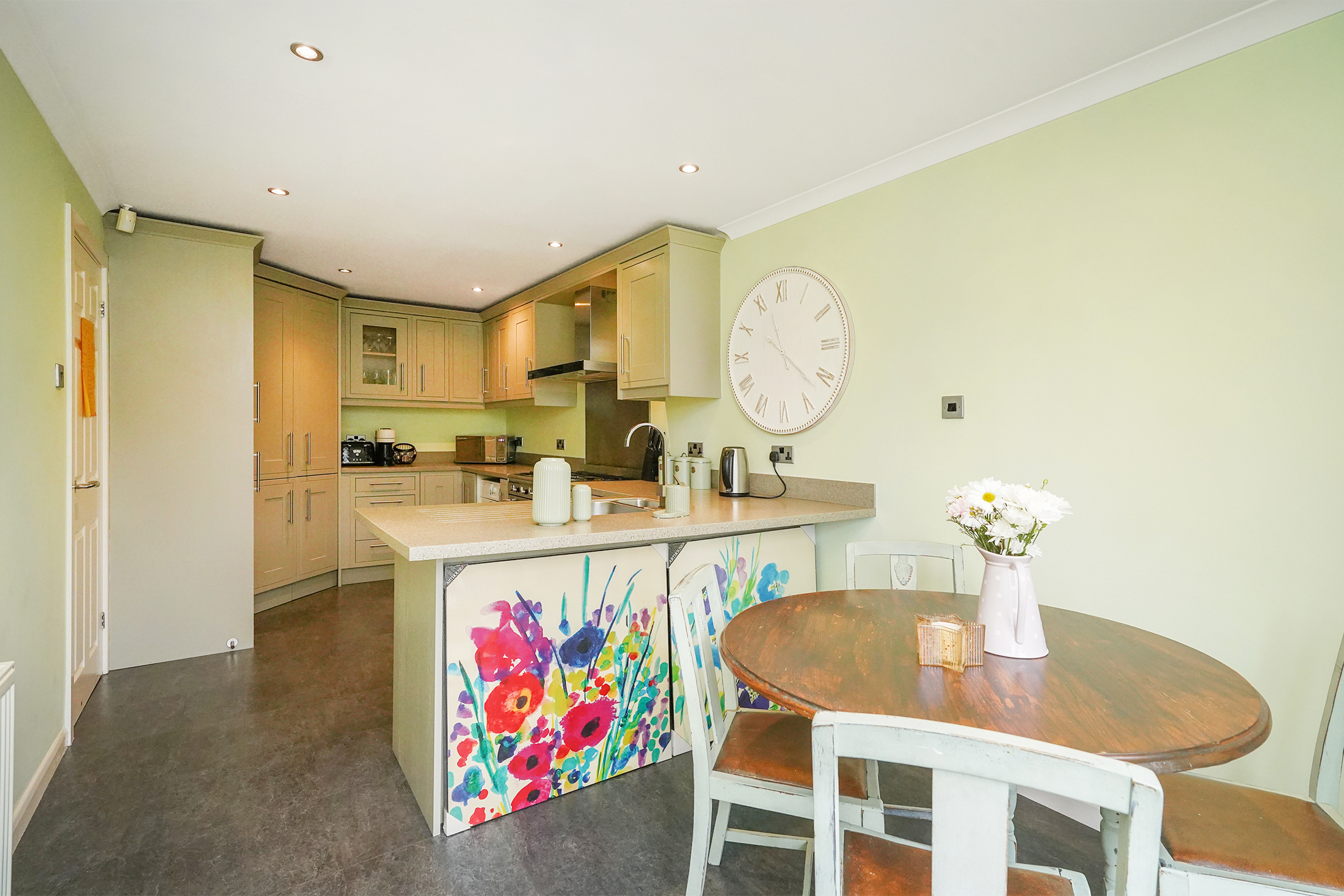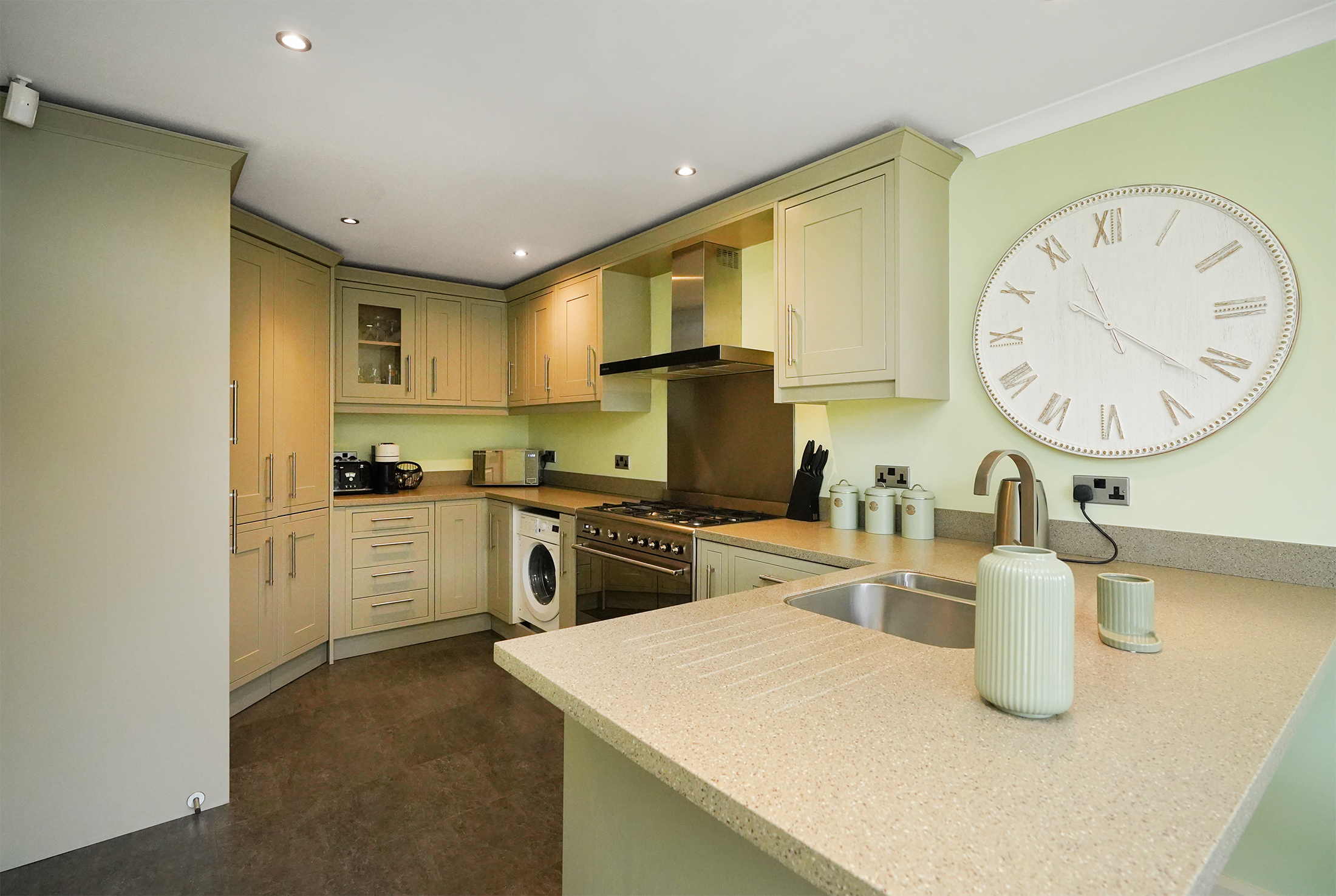 The property is immaculately presented with superb attention to detail throughout, featuring a generous bay-windowed lounge with neutral decor that creates a welcoming living space. The open-plan kitchen and dining area is equipped with integrated appliances and bespoke cabinetry, offering direct access to the garden. Each of the four bedrooms is a comfortable double, including a principal suite with a modern en- suite shower room, while the main bathroom is fitted with a contemporary three-piece suite. The property benefits from a flexible layout for growing families and those working from home.