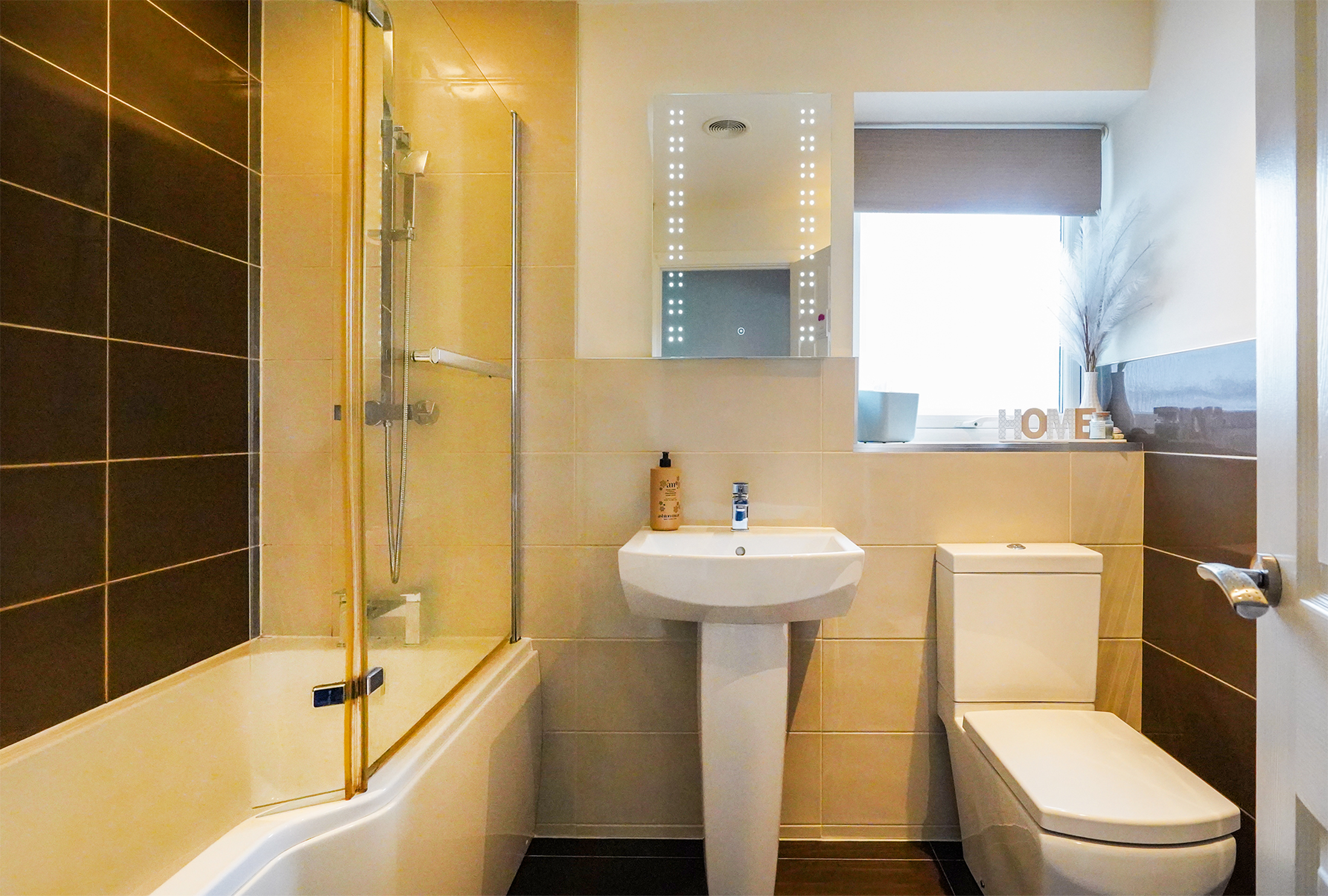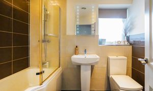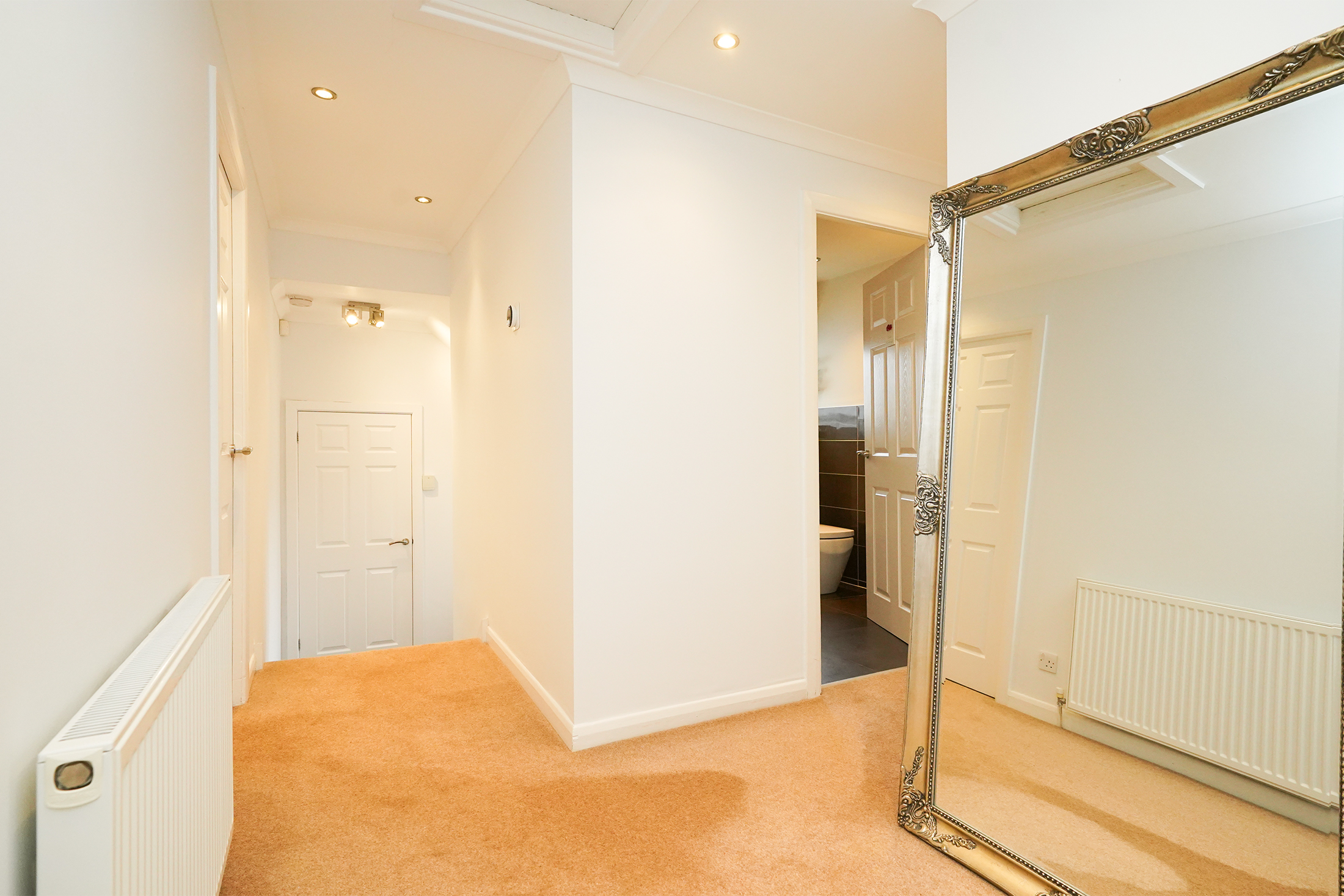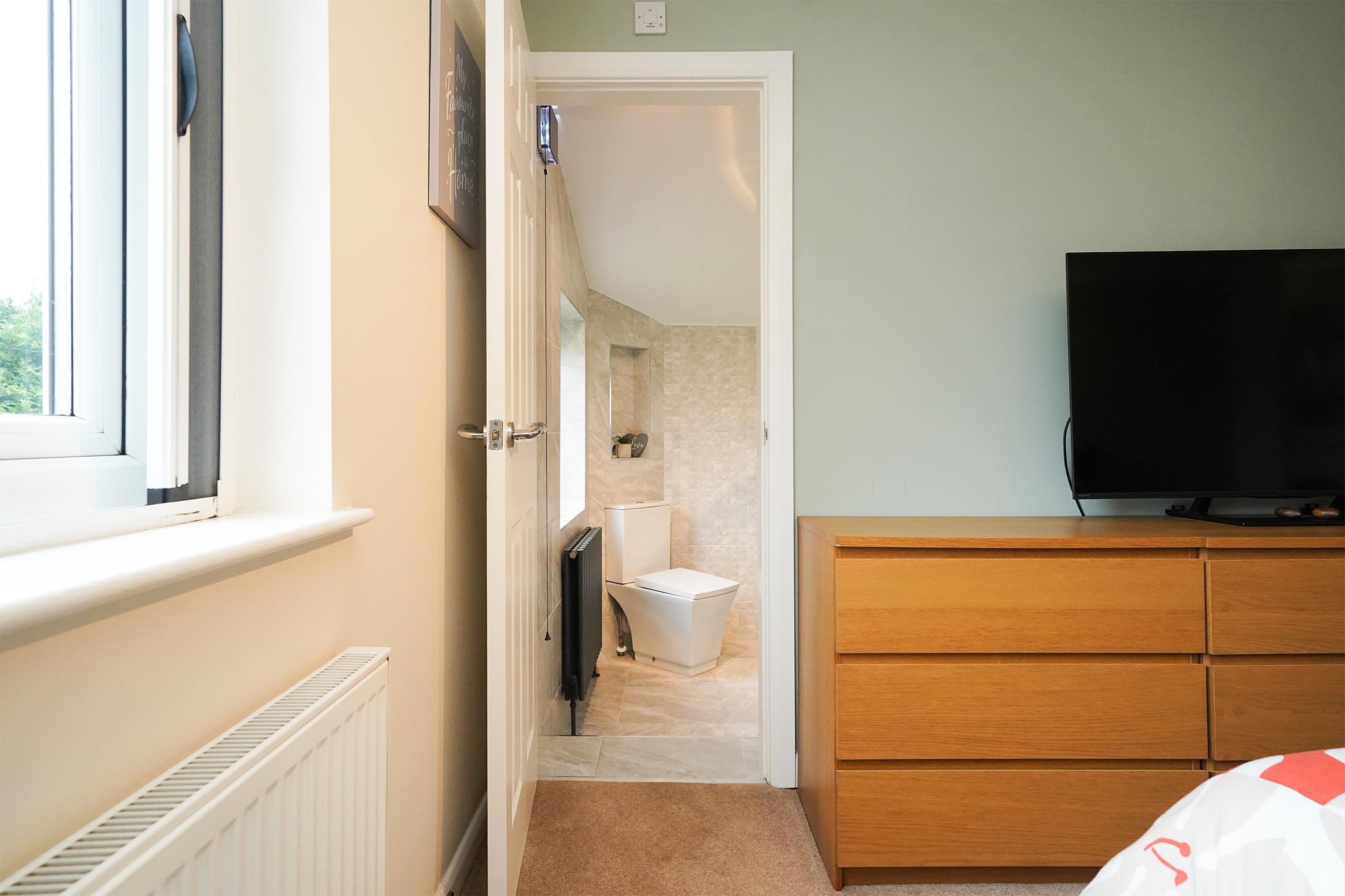 The property is immaculately presented with superb attention to detail throughout, featuring a generous bay-windowed lounge with neutral decor that creates a welcoming living space. The open-plan kitchen and dining area is equipped with integrated appliances and bespoke cabinetry, offering direct access to the garden. Each of the four bedrooms is a comfortable double, including a principal suite with a modern en- suite shower room, while the main bathroom is fitted with a contemporary three-piece suite. The property benefits from a flexible layout for growing families and those working from home.