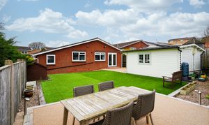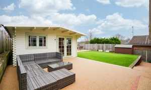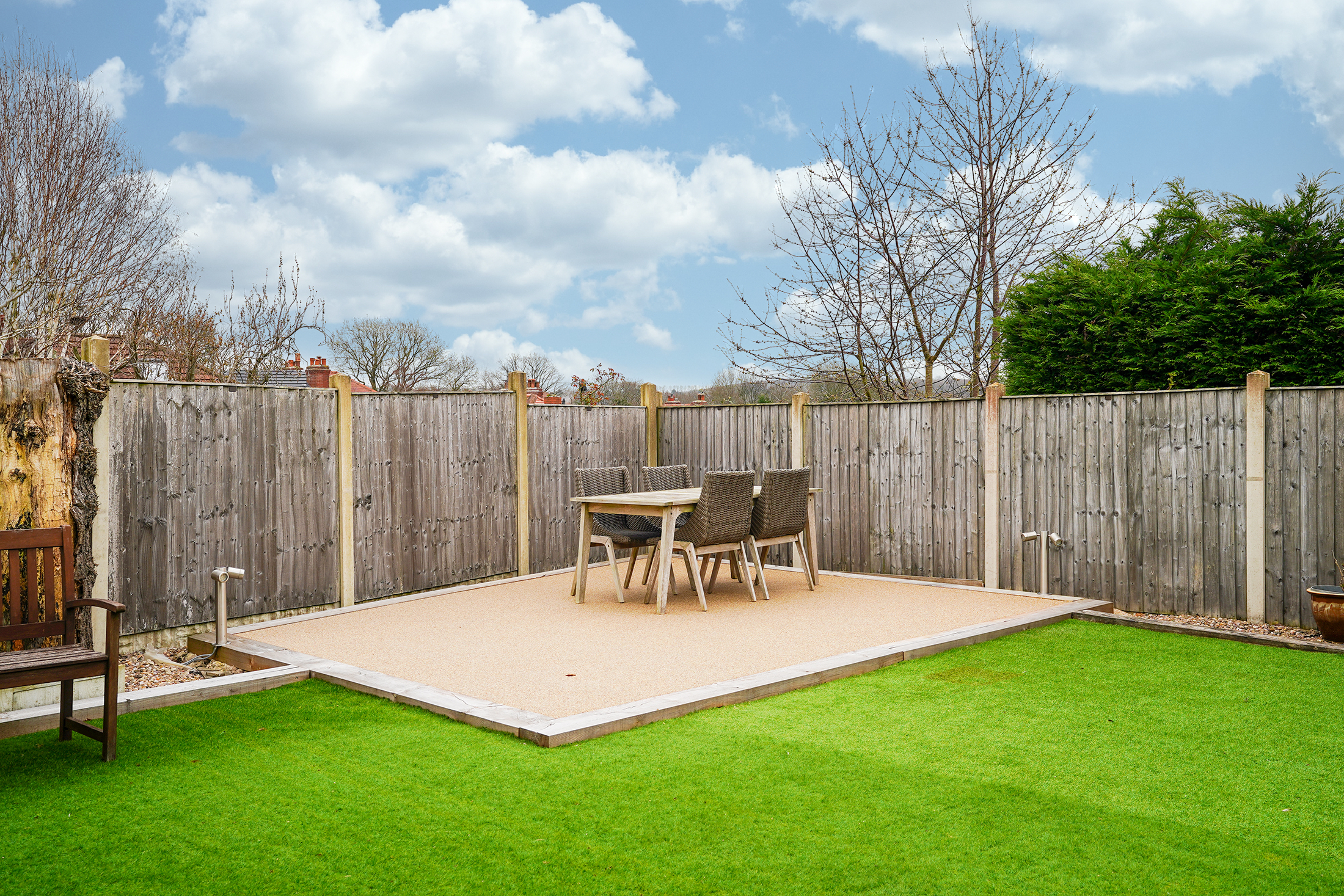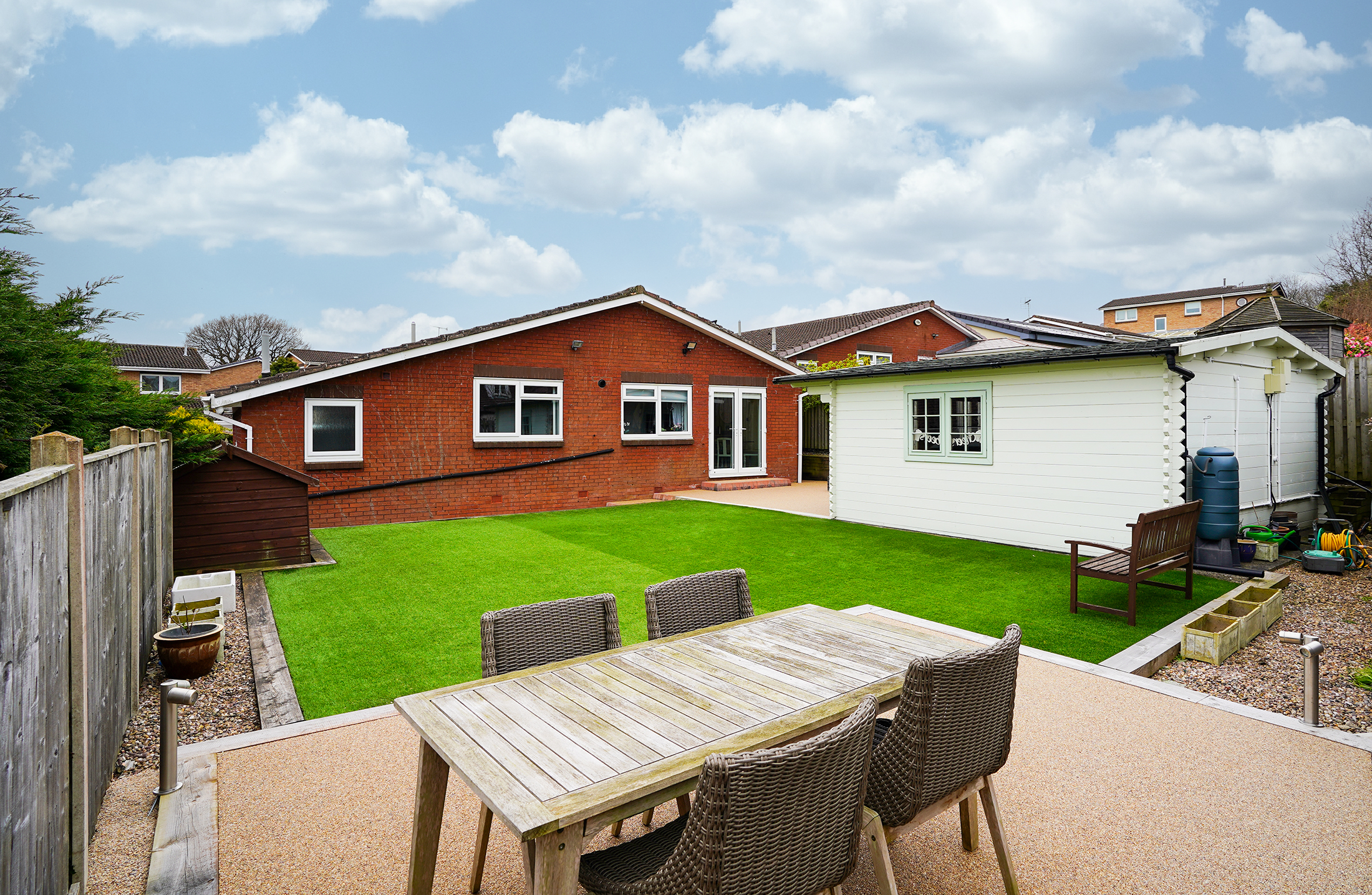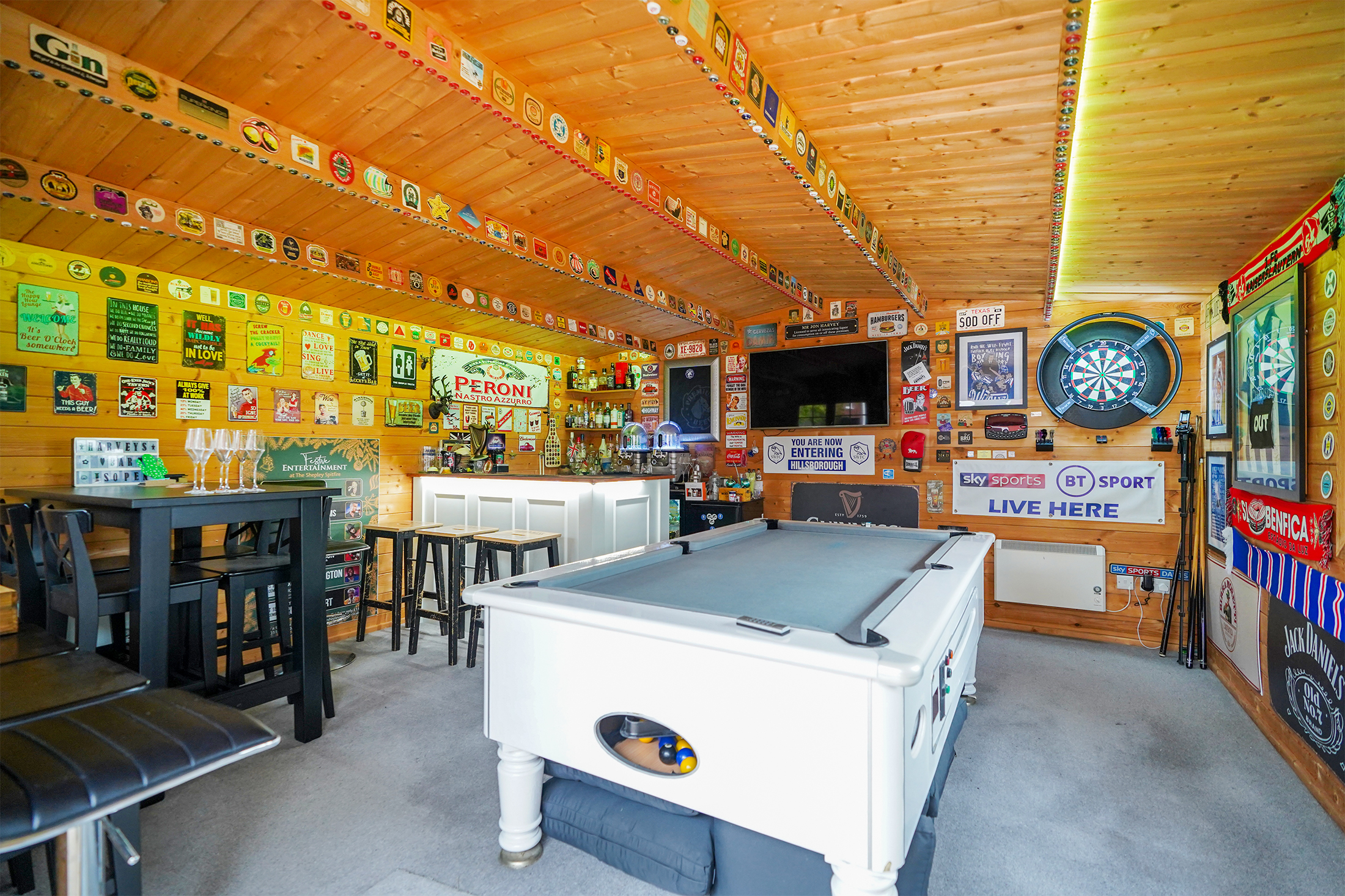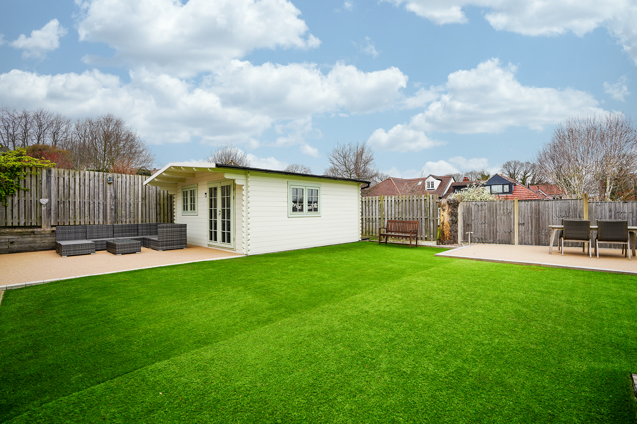 - Low-Maintenace Garden With Resin Patio, Artificial Lawn & Bar/Games Room