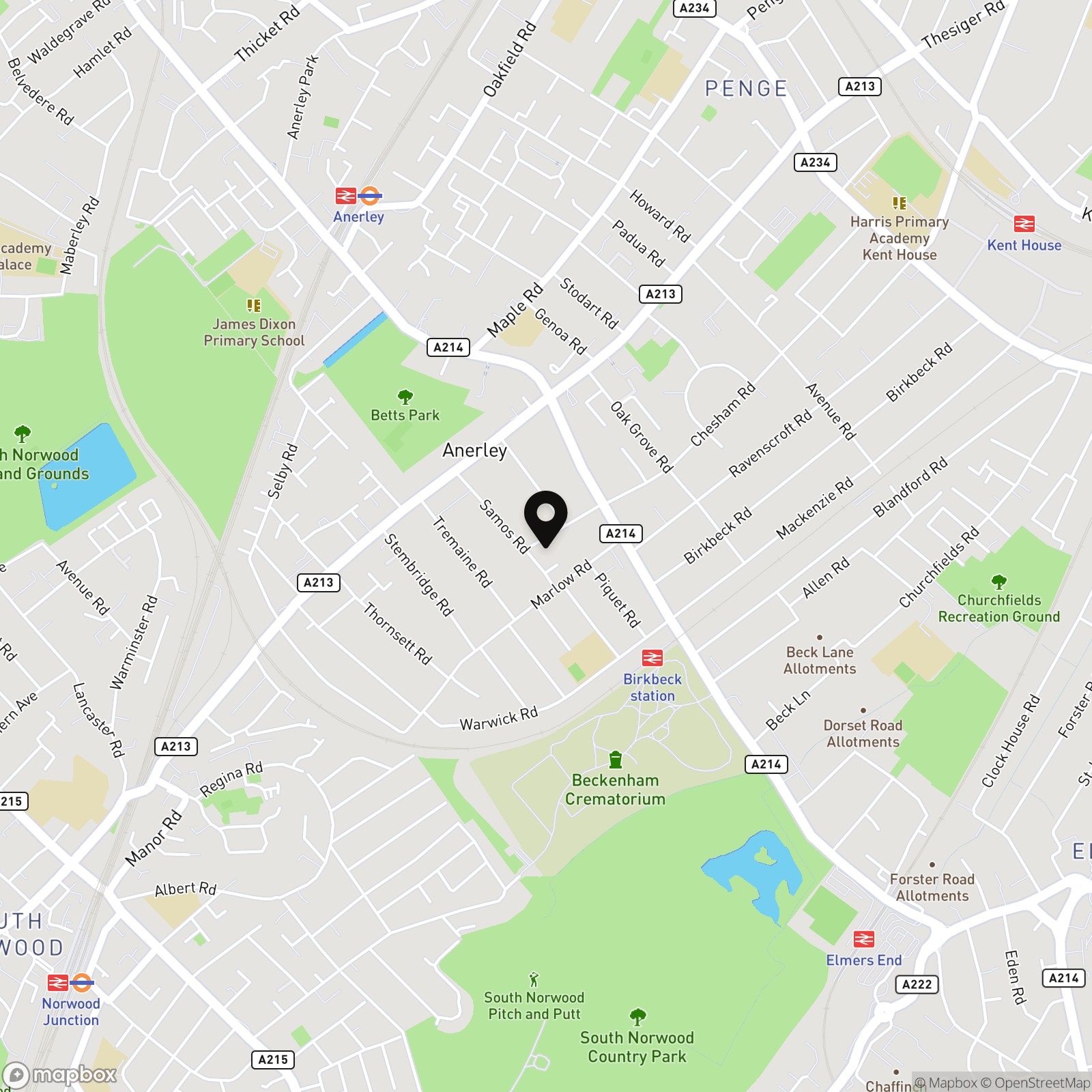 Birkbeck Station is around 0.3 miles away—about a 5-minute walk. It's on the Hayes line with two trains per hour to Beckenham Junction and London Bridge via Crystal Palace. There's also a tram every ten minutes running to Beckenham Junction or East Croydon in the opposite direction, which is useful for Gatwick Express connections. Beckenham Junction is a major interchange with direct trains to London Bridge and Victoria.