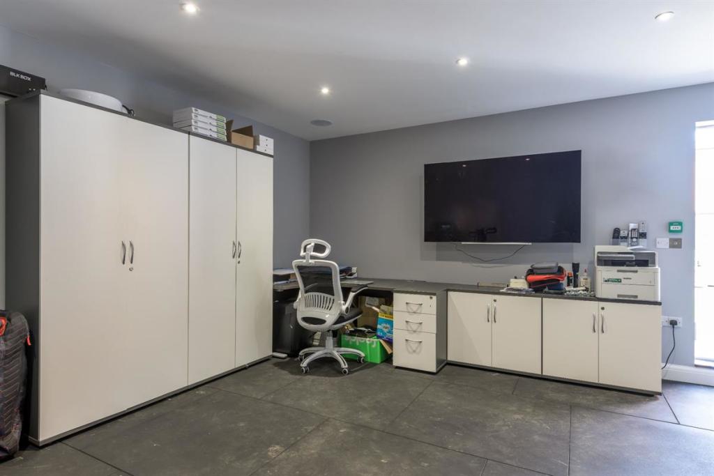 To the front, the electric-gated driveway delivers secure off-road parking for four vehicles, and there are parking bays on the road for visitors if required. Still with storage to the front, the majority of the detached garage has been converted into a gym with specialist flooring, although there’s plenty of flexibility to use for lots of activities—work or play.