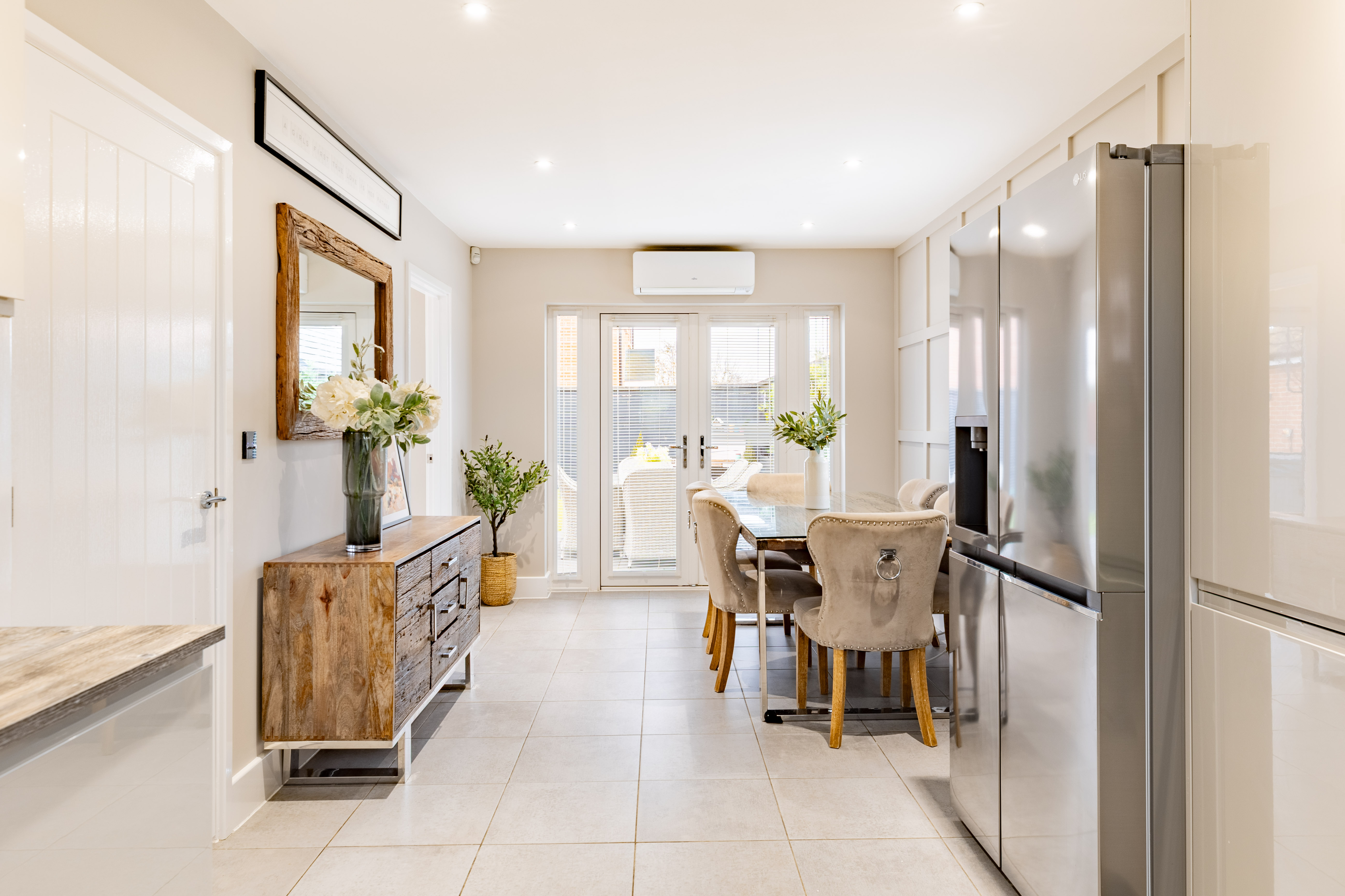 Filled with style, space, and all the home comforts, this detached abode on the small ‘The Arches’ development provides an opportunity for quiet village living in a modern and well-proportioned property. Built in 2019 by quality local builders, the owners have upgraded the original with tech elements such as air conditioning, CCTV and an alarm system, as well as decorative additions like feature wall panelling and fitted window shutters.