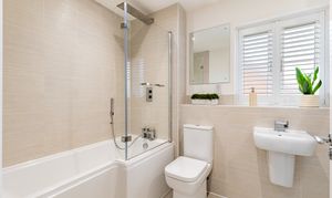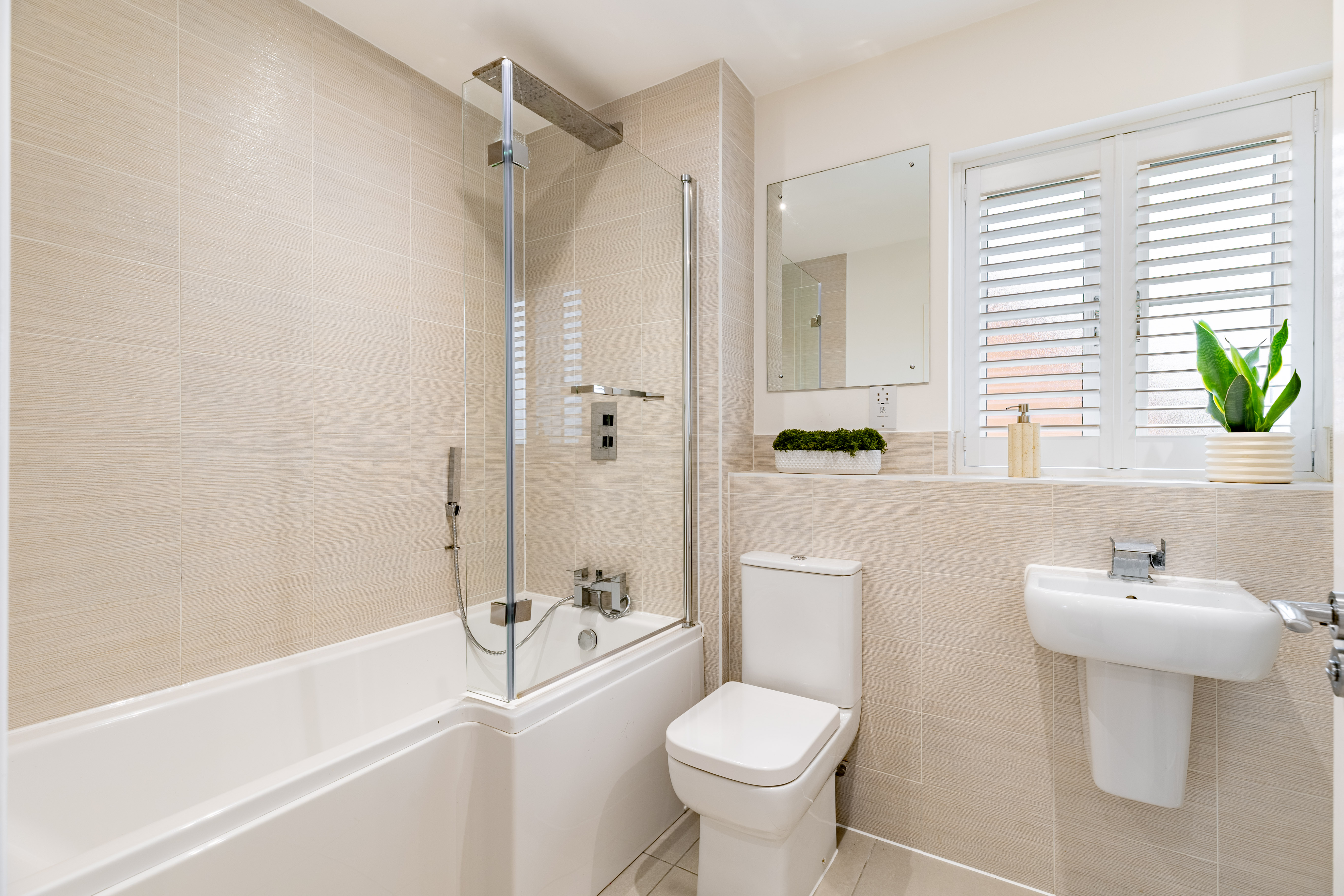 Upstairs, there are four good-sized bedrooms, two with double mirrored wardrobes with sliding doors. The family bathroom and the master’s en suite shower room are fitted in contemporary suites with complementary tiling. The bathroom has both a shower cubicle and a P-shaped bath. To the landing, storage is available in the airing cupboard and the loft, and there’s also an understairs cupboard in the hall.