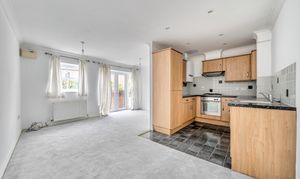 This two-bedroom semi-detached house in Liss provides low-maintenance living in a convenient setting. The ground floor features an open-plan layout that combines the main living area with space for dining and a fitted kitchen, complemented by a cloakroom/utility room found off the hallway, for added practicality.