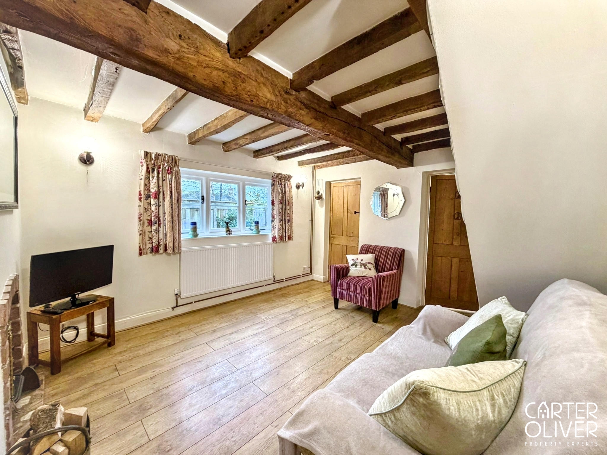 Upon entering, you are welcomed into a comfortable and inviting reception room, brimming with character, complete with original beams and a Electric Log Burner, creating the perfect space to relax and unwind. The kitchen and bathroom have recently been refreshed, now offering bright, airy, and neutral spaces that allow you to move straight in with ease.