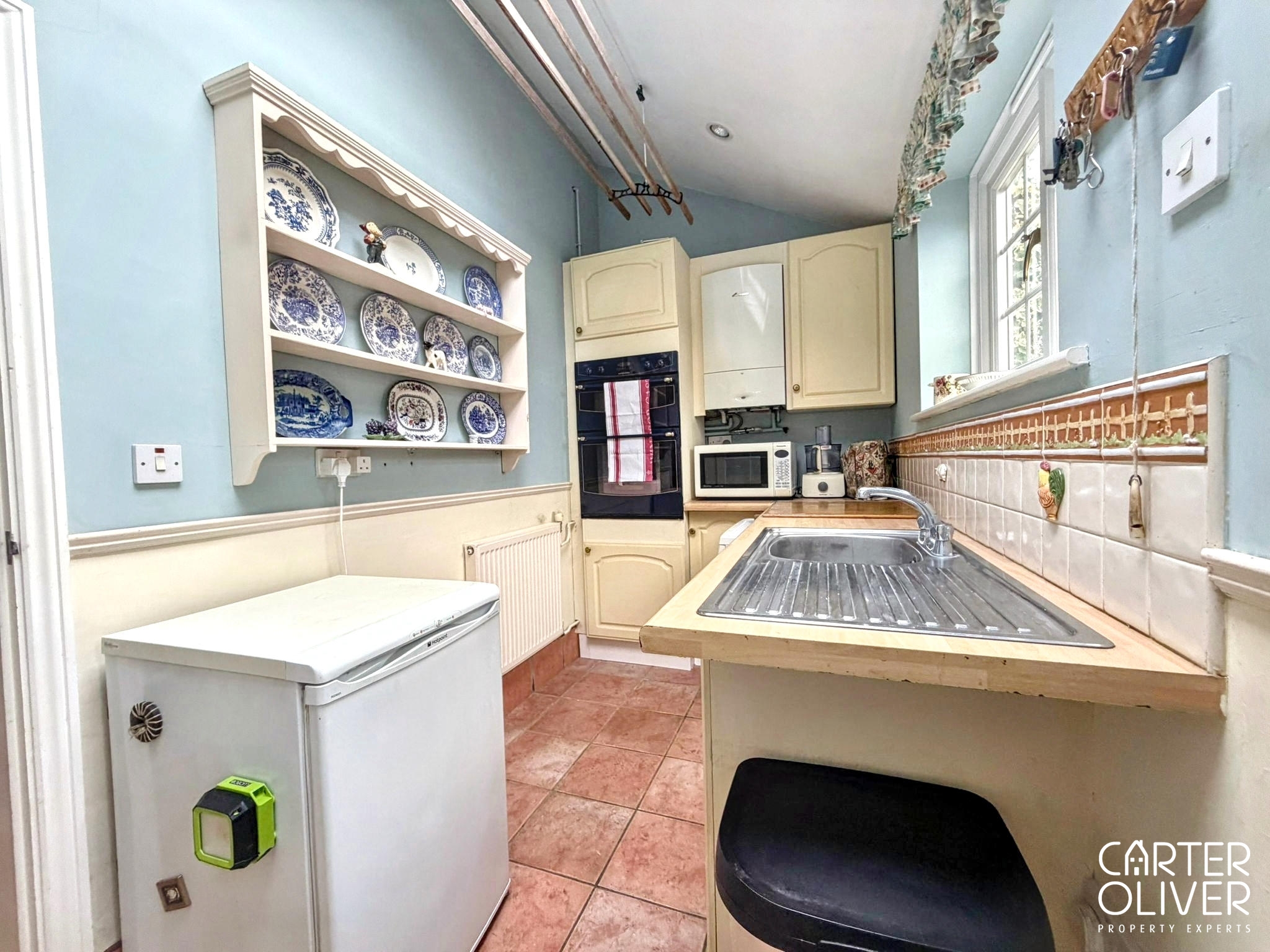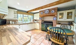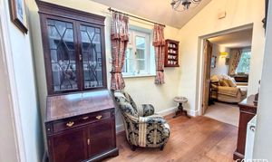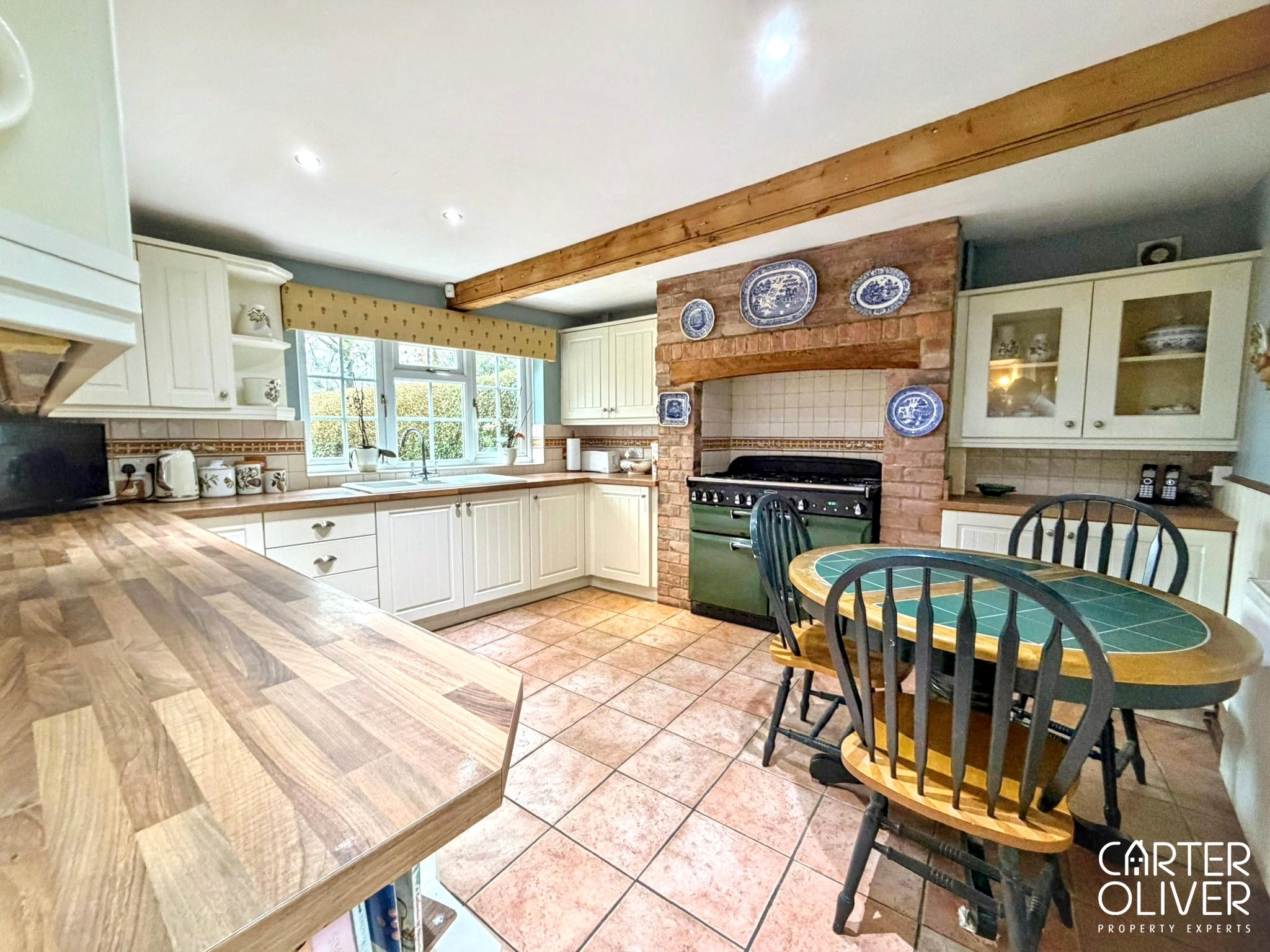 This exceptional detached 3 Double Bedroom cottage presents an outstanding blend of character and modern convenience, thoughtfully extended, with 3 spacious reception rooms and Gardens to 3 sides of the home. You are greeted by a gated gravel Driveway to the front, and an additional driveway and garage to the rear, ensuring ample off-road parking for residents and guests alike. The picturesque cottage façade, with its ivy-clad brickwork, well-maintained hedges, and rustic wooden gate, offers instant kerb appeal and a warm welcome. Inside, the property boasts an array of inviting living spaces, featuring period details and elegant wooden beams along with an Inglenook Style Brick Fireplace with Log Burning Stove. The kitchen is a true highlight, combining modern appliances and integrated storage with a striking range cooker set within a brick surround.