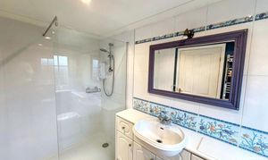 A very good-sized en-suite shower room, which has had a new double walk-in shower cubicle recently fitted.