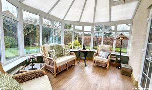 A large conservatory, bringing in lots of natural light to the lounge area. This large reception room gives a fabulous view of the gardens, which span to the front, side and rear of the property.