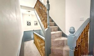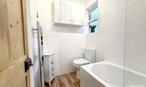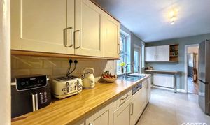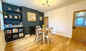 This beautifully presented four-bedroom, two-bathroom mid-terraced house offers versatile living space ideal for families or professionals seeking comfort and style. The property features two spacious reception rooms, including an inviting living room with a charming fireplace, large window, and elegant wood flooring, as well as a separate Dining Room complete with built-in shelving and another cosy fireplace. The breakfast kitchen is thoughtfully designed with integrated appliances, ample countertop space, along with a breakfast bar, all flooded with natural light from generous windows. Upstairs, the accommodation comprises Three Large Doubles and One Single bedroom, benefitting from built-in storage, neutral decor, and plenty of natural light, creating relaxing retreats for all the family. The stylish family bathroom is tiled with a heated towel rail, offering a luxurious and practical environment for daily routines.