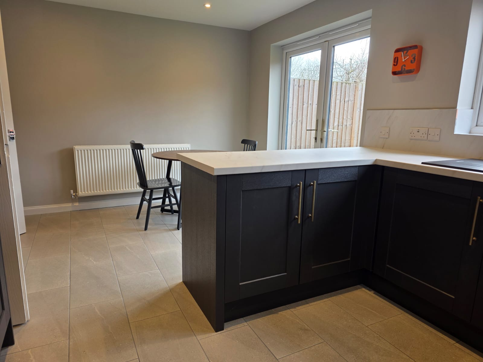 This beautiful kitchen/diner providing a bespoke, handmade fitted kitchen, which includes sink and drainer unit with mixer tap over, integrated appliances such as; oven, hob, extractor hood, washing machine and fridge/freezer. The room has tiled flooring, breakfast bar, spotlighting, composite side door, UPVC double glazed french doors out to the rear garden plus UPVC double glazed window.