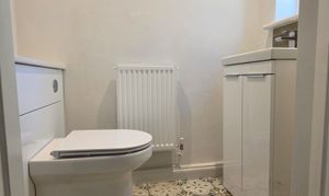 This includes low level flush WC, radiator, vanity unit with integrated sink and mixer tap, tile splashbacks and obscure UPVC double glazed.