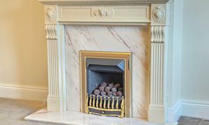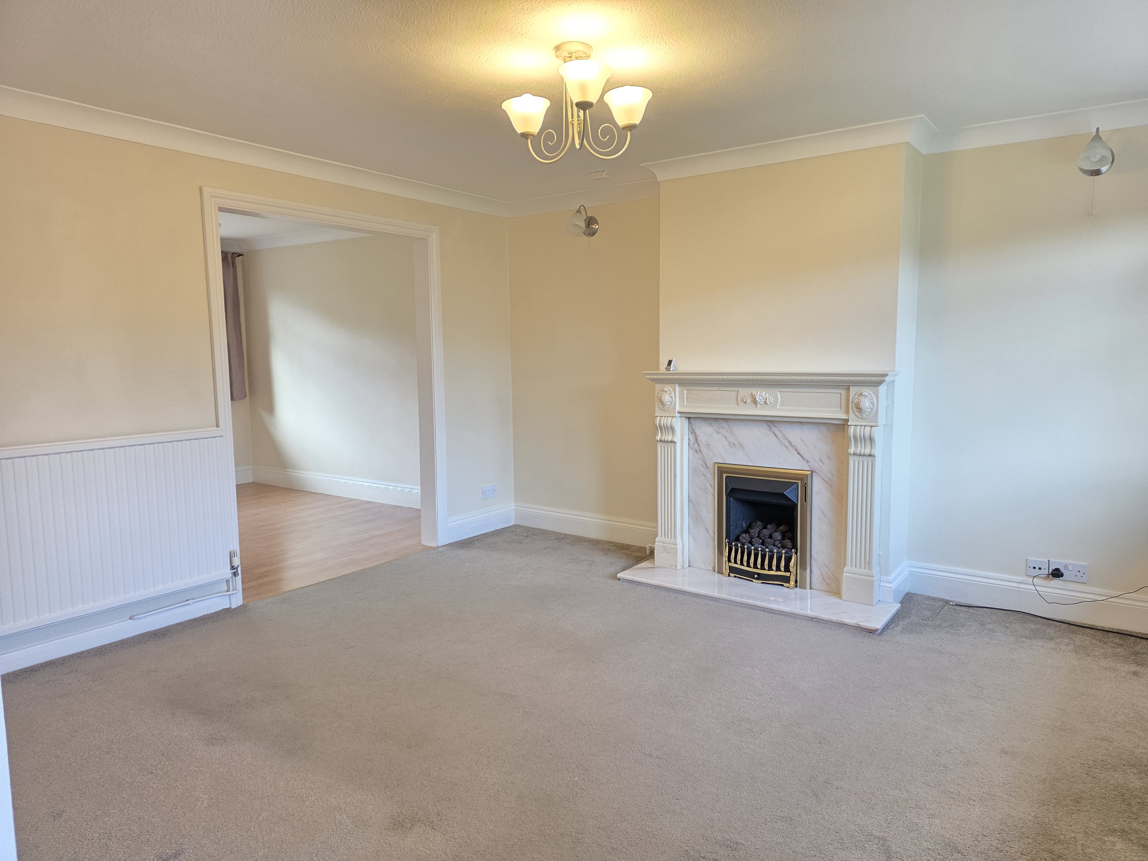 This has carpet flooring, feature gas fire place, radiator, under-stair storage, coving to ceiling and UPVC double glazed window.