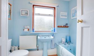 With double glazed window to the rear elevation, bath with electric shower over, pedestal wash hand basin, low-level WC, loft access, cupboard housing boiler, radiator.