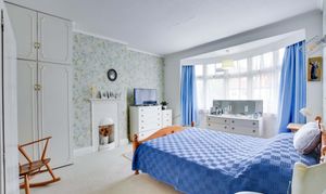 With bay window to the front elevation, original style fireplace, built-in wardrobe, radiator.