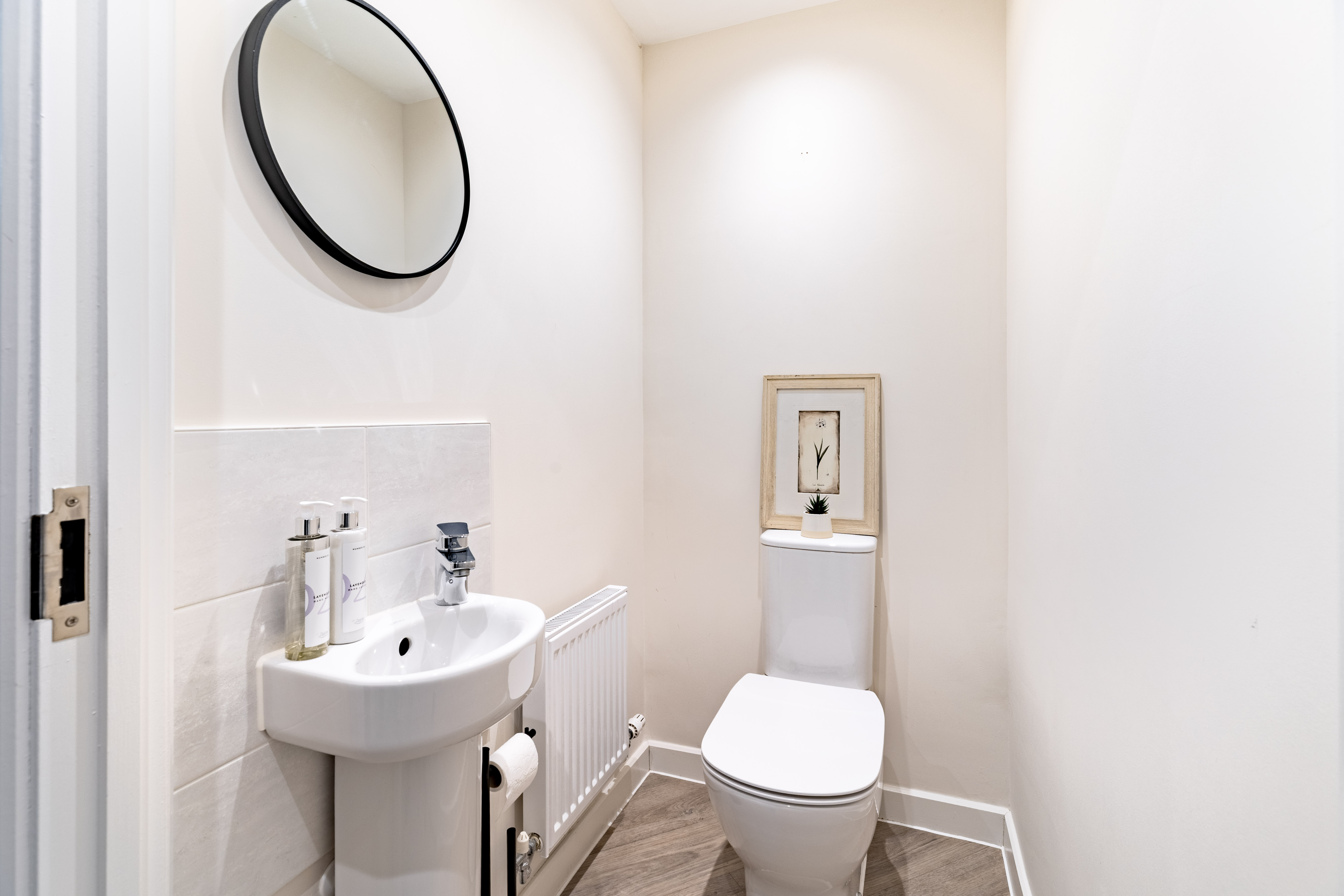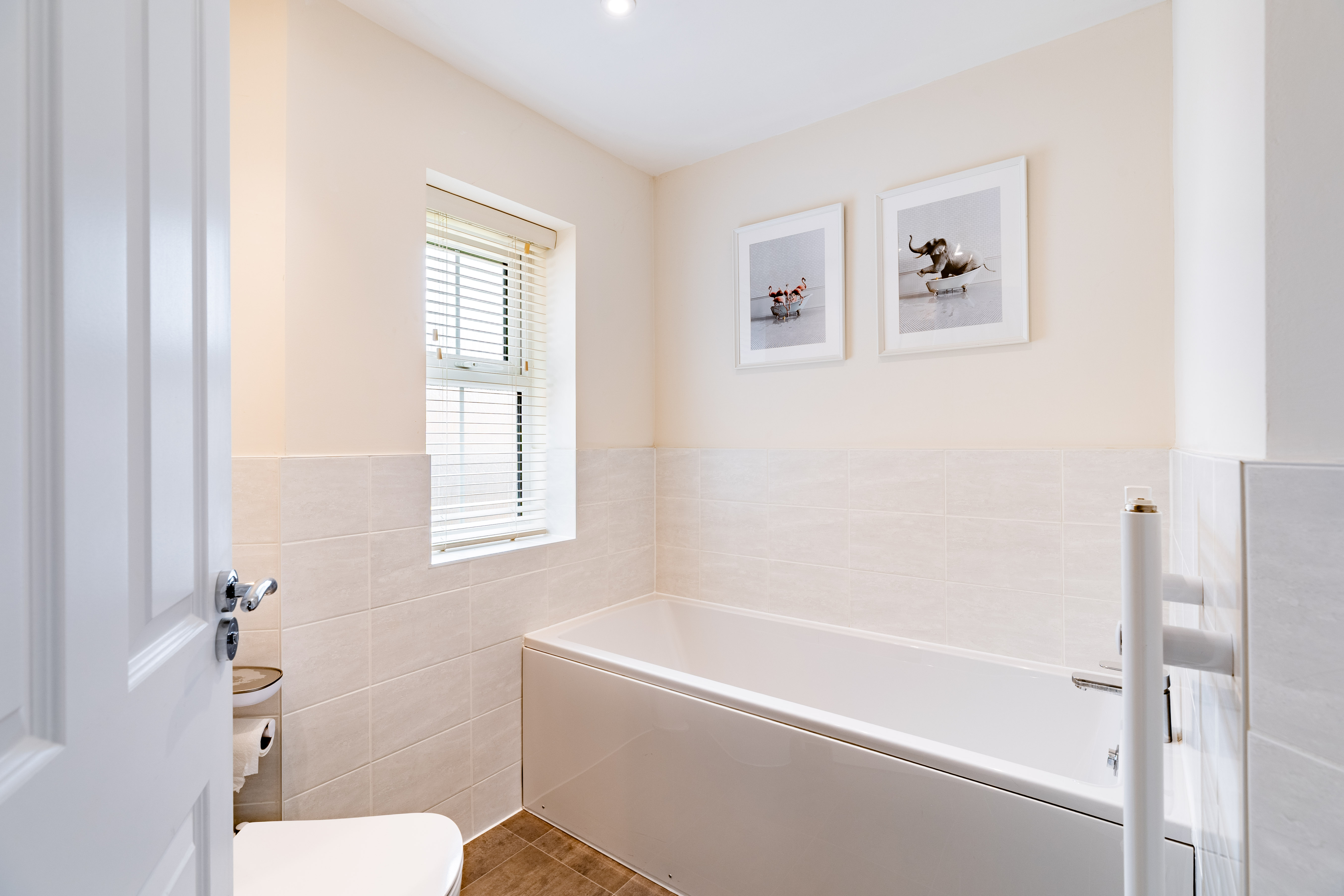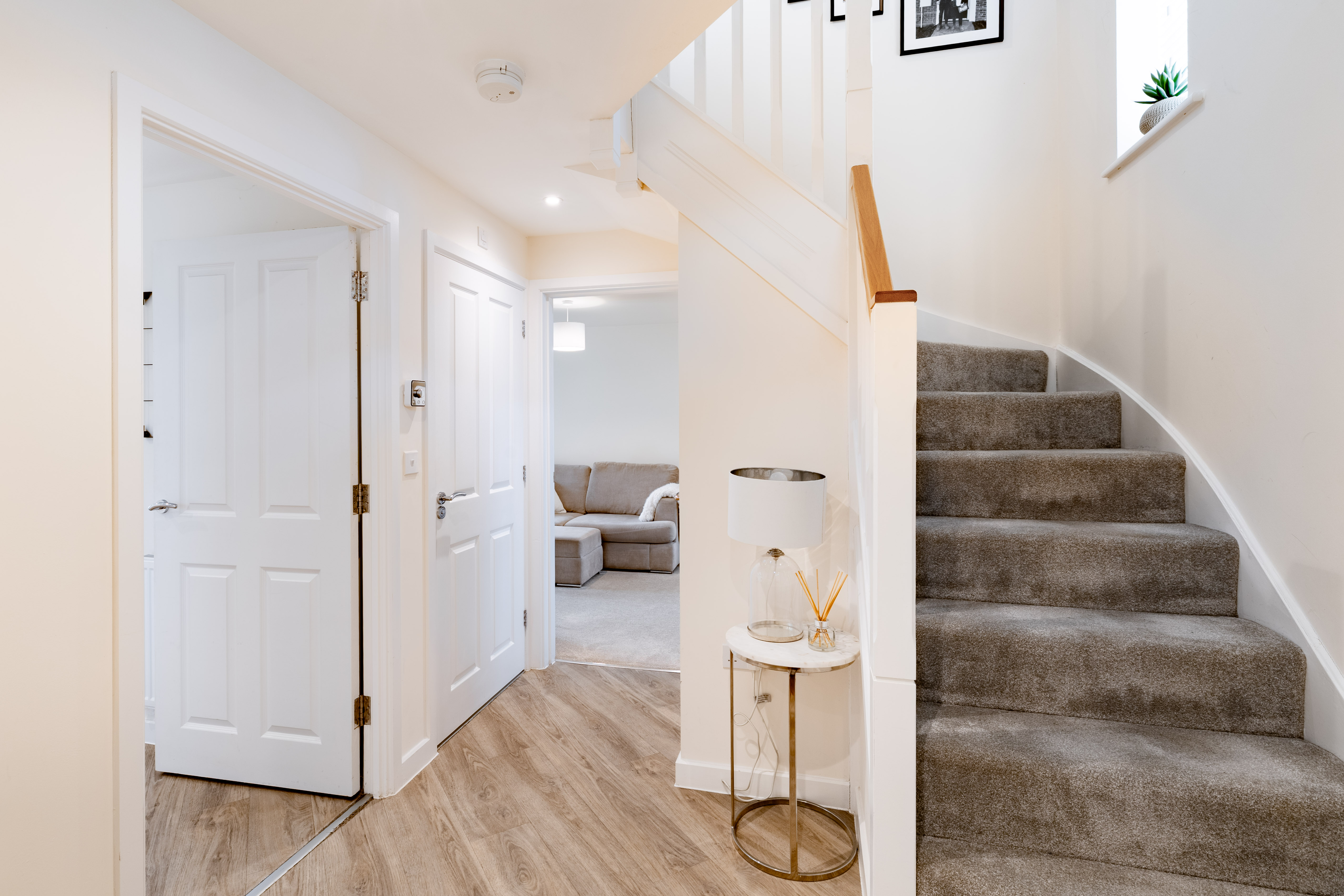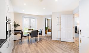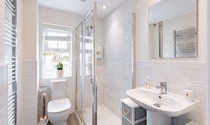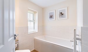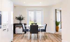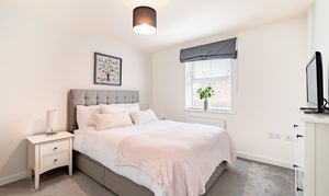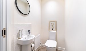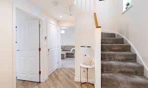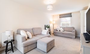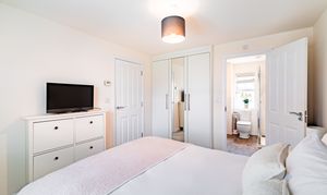 The kitchen/dining room provides a sociable space for family meals and everyday living, fitted with integrated appliances including oven, fridge, washing machine, and dishwasher. The kitchen cabinets offer ample storage without compromising on dining space. The sitting room is a bright and spacious reception area, offering a comfortable space for relaxation and entertaining. Both the kitchen and sitting room offer access to the rear garden via double doors. Useful storage is found in the under-stairs cupboard, whilst a ground floor WC completes this level. Hive thermostat controls ensure comfort and efficiency throughout.