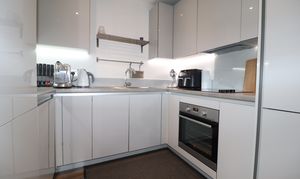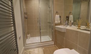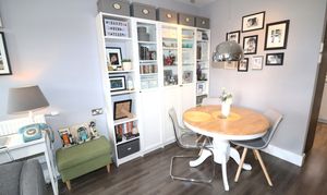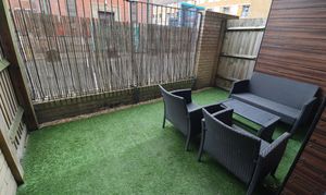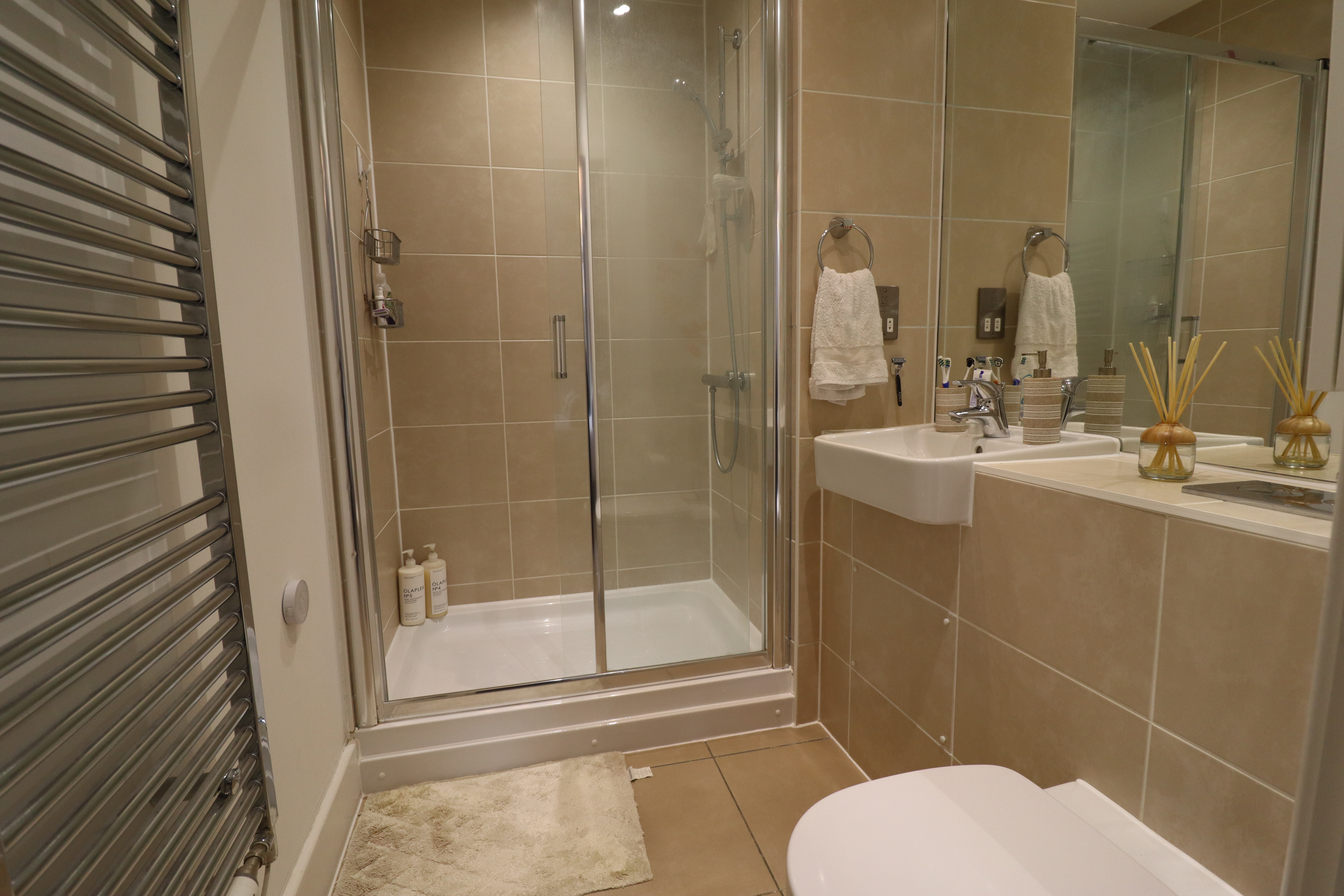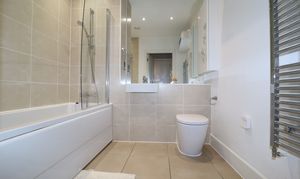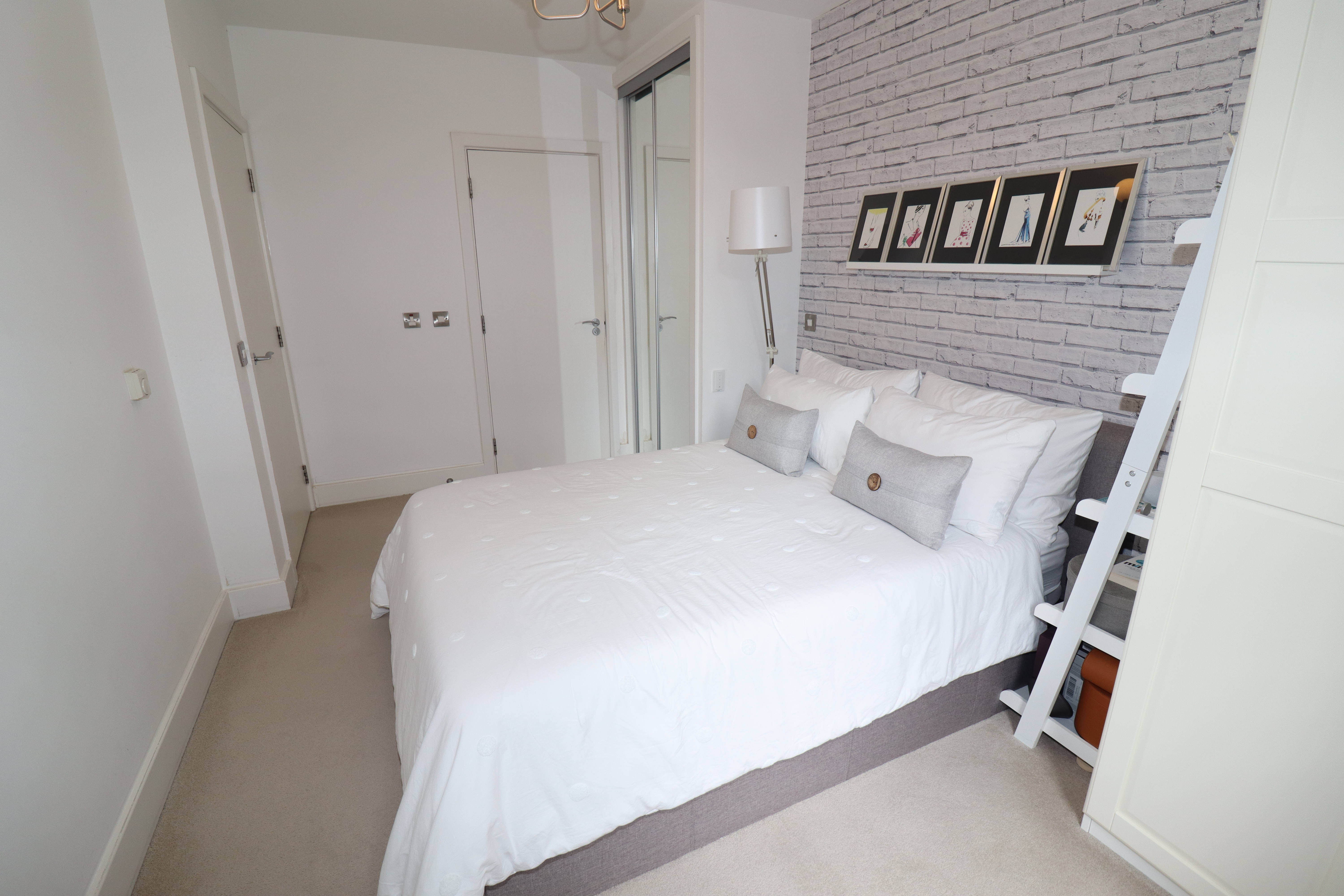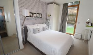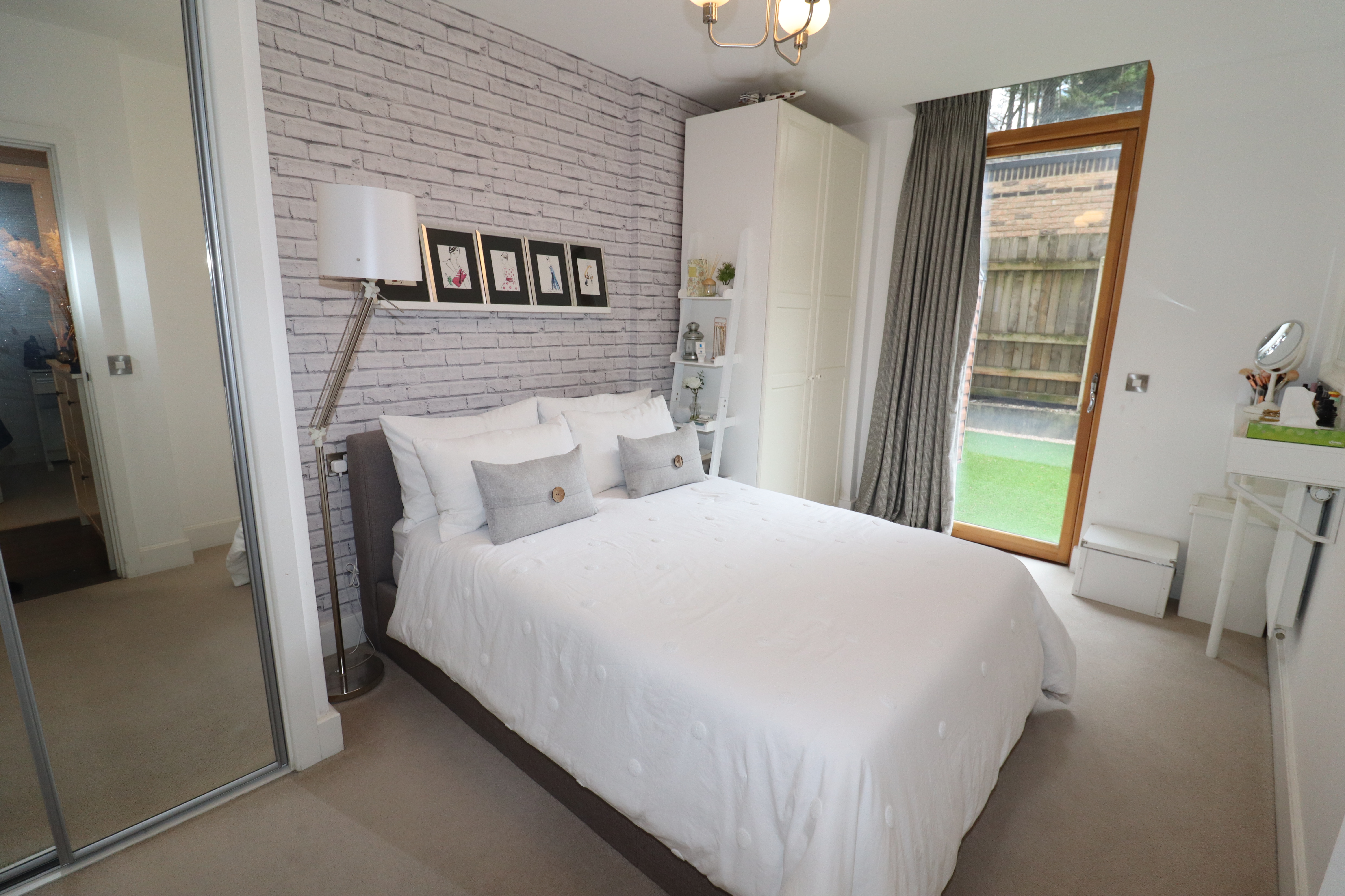 Immaculately presented modern two bedroom, two bathroom ground floor apartment in the popular Leeward Court development on Yeoman Street with private front and rear gardens, available from mid April on a part-furnished basis.