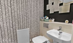 Upstairs, the main bedroom comes with built-in storage and its own ensuite, which is always a bonus. There’s another double bedroom, plus a single that could work well as a nursery, guest room, or home office. The family bathroom is modern and fresh, with a three-piece suite and an overhead shower.